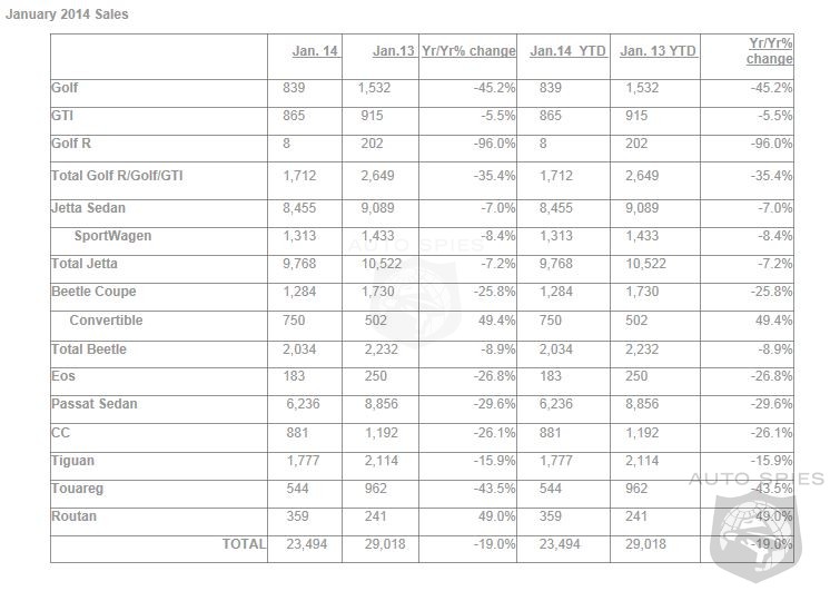 “With our planned wind down of models in run-out, our January sales results were expectedly impacted,” said Mark Barnes, Vice President, Sales, Volkswagen of America, Inc. “Nonetheless, we’re optimistic we will see a steady pace in the months ahead as our Super Bowl advertisement, “Wings,” continues to raise awareness of the reliability and durability of our products, and we prepare to launch the next generation Golf family of vehicles.