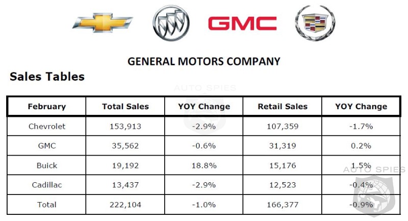 - Crossover sales were up 4 percent. Sales of the Buick Encore nearly doubled, the Cadillac SRX was up 23 percent and GMC Acadia deliveries were up 2 percent. The Buick Enclave and Chevrolet Equinox had their best February sales ever.
