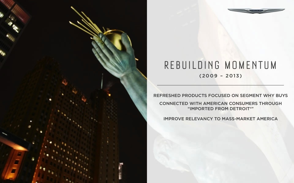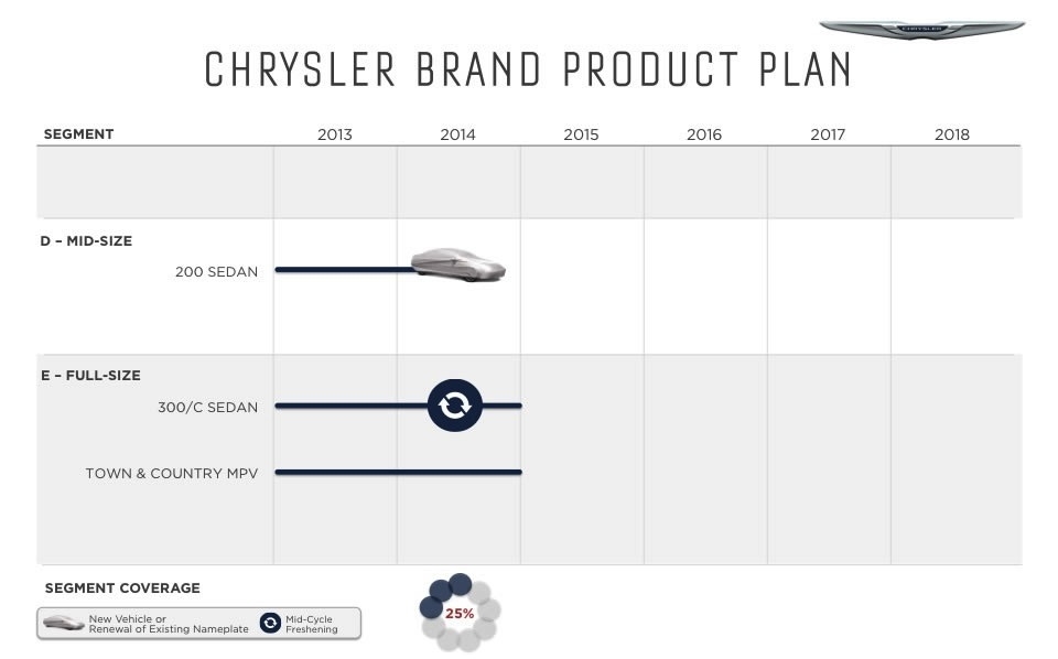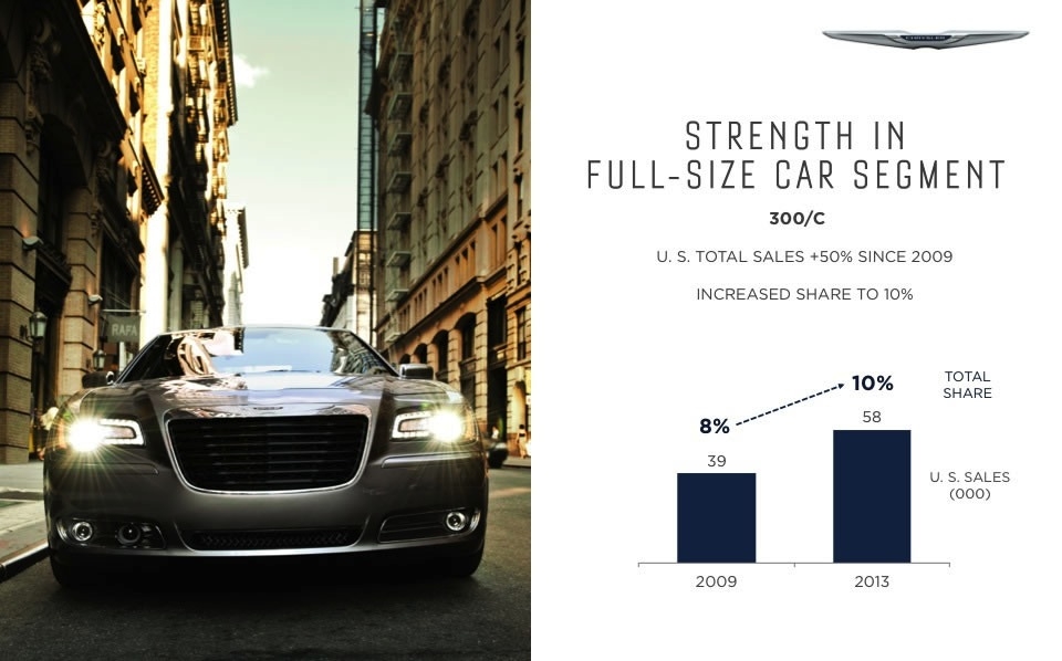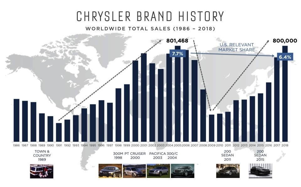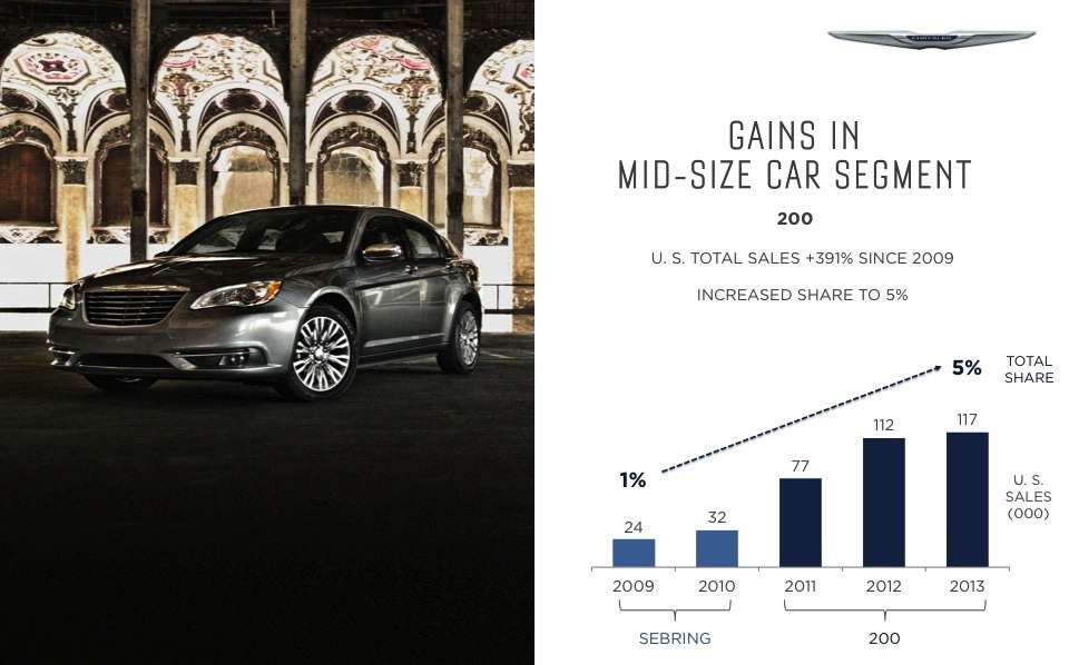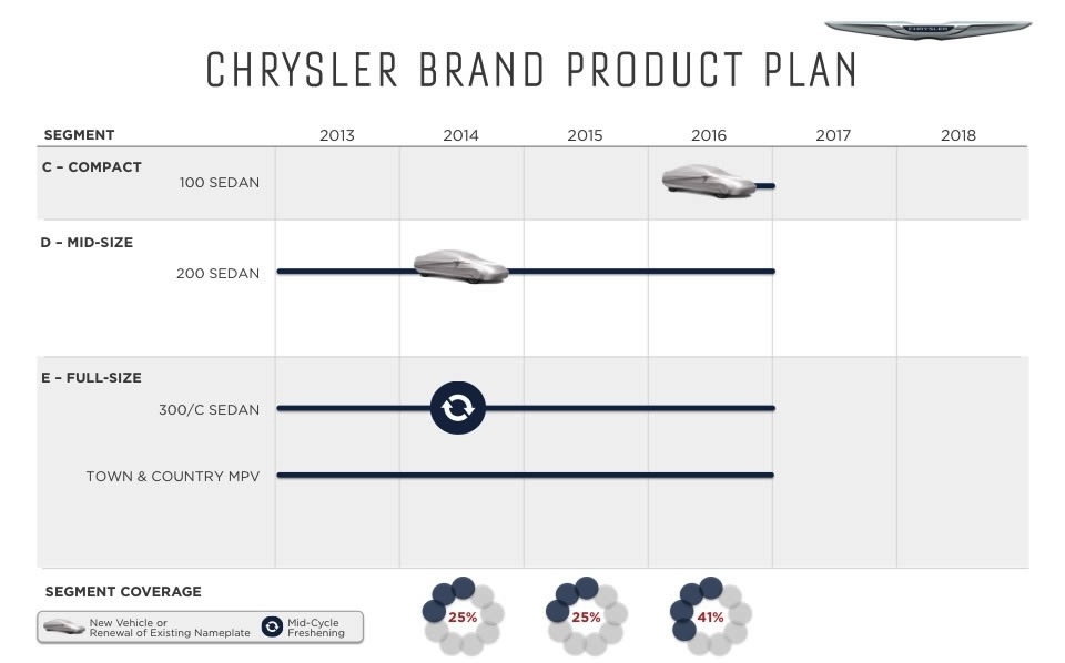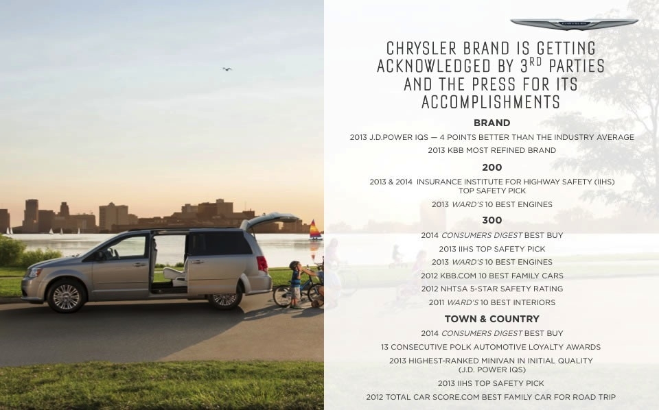 If you were like most of us you had given up hope for Chrysler as it faced the second bailout in the brand's seesaw history. But salvation came not only in the form of a US bailout but leadership from another unlikely source, Fiat. The leadership and forward thinking of Fiat was just what it took to turn the company around and just a few short years later we see a new Chrysler.Now the question is how do you grow when you only offer 3 models? A new compact sedan labeled the 100 rolls out in 2016 A full-sized crossover in 2017A mid-sized crossover in 2018. The Chrysler Town & Country minivan will be redesigned in Fiat Chrysler also debut a new plug-in hybrid version of the Town & Country and a plug-in crossover in 2017. Chrysler's ambitious plan is to grow from its 2013 level of 350,000 sales to 800,000 units in 2018.