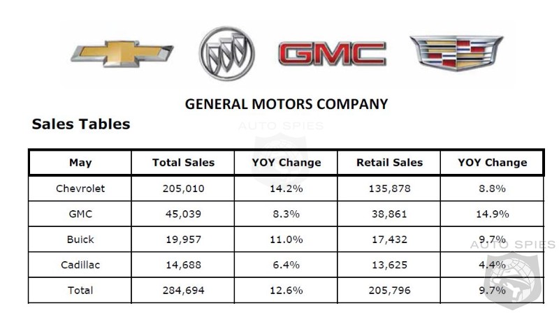 For the month, Chevrolet sales were up 14 percent in total, driven by a 26 percent increase in car deliveries. Buick sales were also very strong, with deliveries up 11 percent in total and 10 percent on a retail basis. Buick had its best May total and retail since 2005. Both Cadillac and GMC had their best May total and retail sales since 2007.