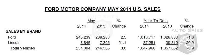 Ford Motor Company U.S. sales totaled 254,084 vehicles in May, up 3 percent from a year ago. Retail sales set several model records with 174,889 vehicles sold – an increase of 6 percent.