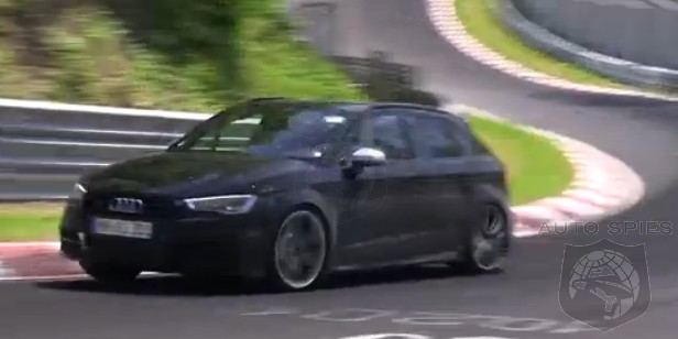 On the outside this Audi looks to be a perfectly normal S3, right? There are a few clues as to why we believe this is a mule for the new 2015 RS3 Sportback though. First of all, look at the size of the brake calipers. Those are no normal S3 brakes to begin with. Furthermore there's the sound of this S3. Does that sound like a normal S3 exhaust note? Lastly, the car is running an HN plate, which are mostly used for Quattro (RS) cars. What do you guys think, is Audi testing the new RS3 engine in this S3 body?