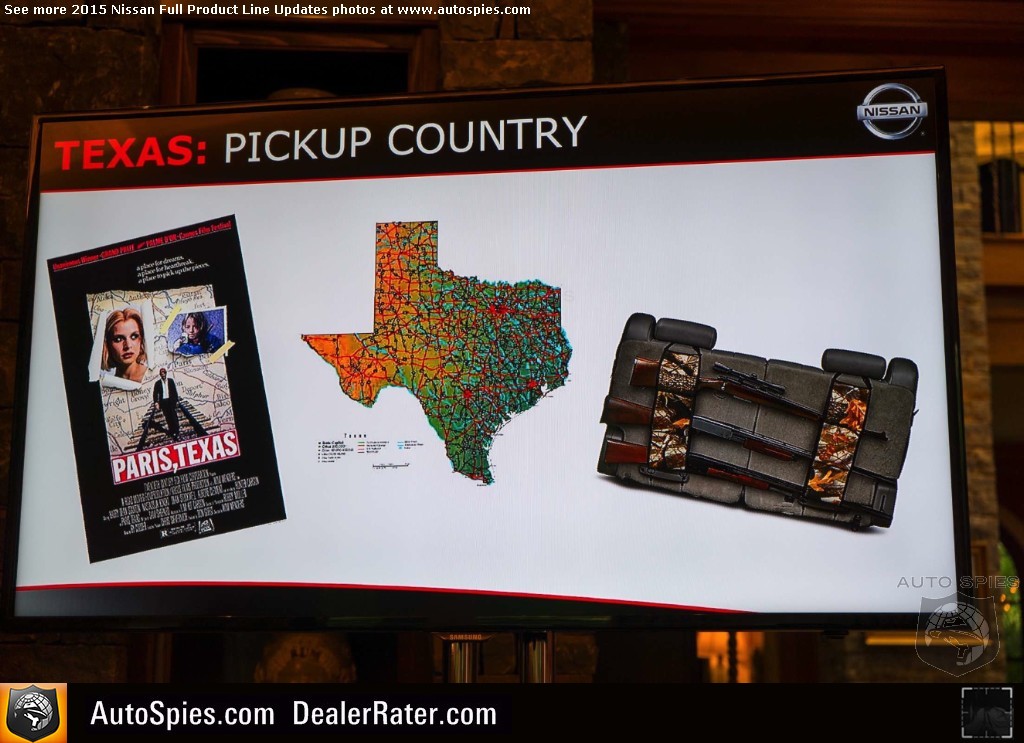 Following up on my previous threads about Agent 001's trip to Nashville, here's a great informational thread about what Nissan is looking to do in 2015. Although a lot of attendees tend to "flake out" or have their eyes glaze over when it comes to the presentations, to us, this is one of the most important parts of any press junket. That's because we think GOD is in the details. A lot of an organization's strategy is actually revealed or hinted at in these presos. 2015 Nissan Full Product Line UpdatesFor me, there's several interesting things I picked up in the photos below:- Nissan is emphasizing its place in motorsport- Nissan is making it's U.S. presence known — manufacturing jobs- It has introduced an all-new product architecture (common module family (CMF)) that will be globalized- An all-new FULL-SIZE pick-up truck will appear at the 2015 Detroit Auto Show- This all-new rearview camera technology seen in the Murano is pretty cool — sounds great in theory but cameras do have their problems- The Alitma and Rogue are likely to be the brand's two most critical models in 2015Have YOU picked up on anything in these slides? Let us know!2015 Nissan Full Product Line Updates
