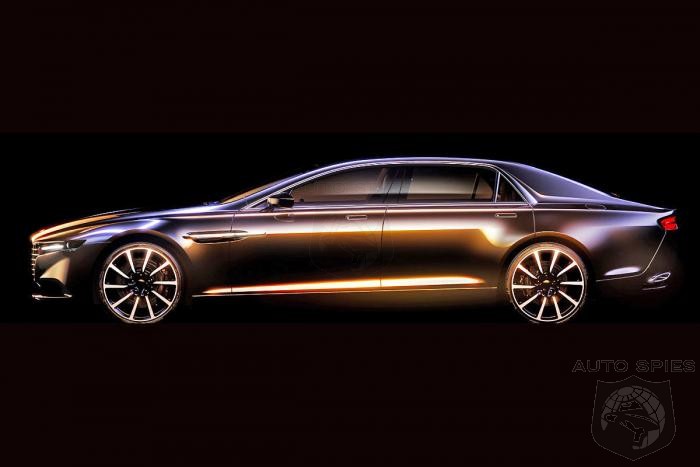 The teaser image shows an elegantly elongated four-door that references both Aston Martin's own Rapide and the William Towns-designed Lagonda from 1976.