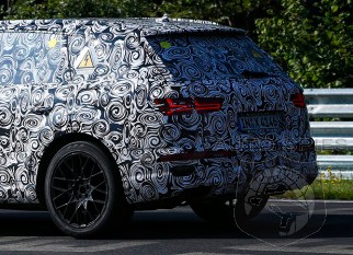 What we know, this is the next generation Q7, testing at the Nurburgring. Nothing new here, but something about the high voltage warning stickers on the back windows tells us that under the camouflaged bodywork lies some kind of hybrid system.
