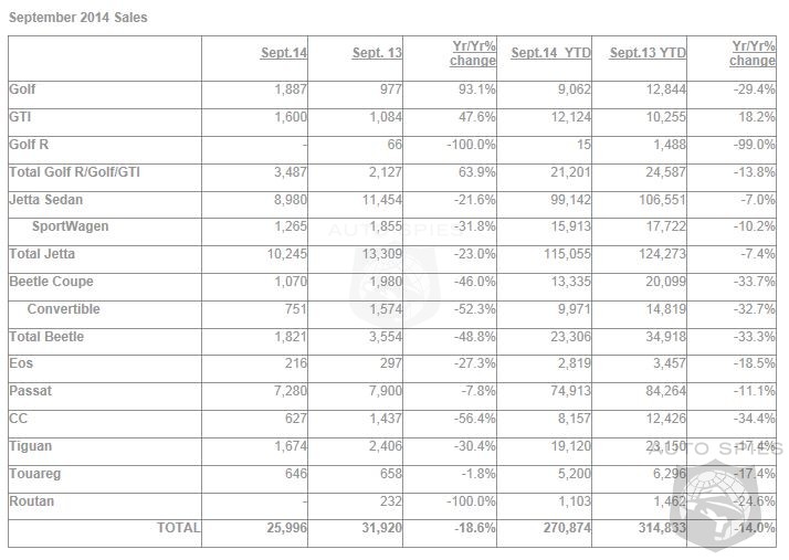Volkswagen of America, Inc. (VWoA) today reported 25,996 units delivered in September.