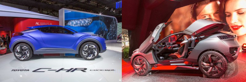 Now, we've had a flurry of CAR WARS! stories before, but this one is going to take two concept vehicles and put them head-to-head. That's where the Peugeot Quartz and Toyota C-HR come into the picture.When I initially posted images of both vehicles, I was expecting people to embrace both product's designs. While we have NO idea if either will see the light of day, users made it clear that they were not fans of EITHER vehicle's design. OFFICIAL Paris Motor Show GalleryI was actually a bit shocked. That's because I think the Quartz and C-HR were easily two of the most interesting and provocative designs at the 2014 Paris Motor Show. Unlike other Peugeot and Toyota models, these compact sport-utility vehicles will NOT put you to sleep. According to the icy reception here on AutoSpies though, it seems that these designs rubbed people the wrong way. So, I thought about it and wondered: WHICH of the two concepts would take the crown for the WORST look? Does the Peugeot Quartz get a seat on the throne or is it the Toyota C-HR that has a face only a mother could love?Well, here's your chance, Spies. Sound off!OFFICIAL Paris Motor Show Gallery OFFICIAL Paris Motor Show Gallery