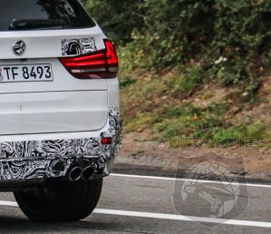 This X5 M prototype features the accents we've come to expect from BMW M -- M front fascia styling with large air intakes and double-slatted kidney grilles, sportier sideskirts and rear diffuser, blue M brakes, cross drilled rotors, quad exhaust pipes and M style wheels. It appears however, that the F85 X5 M will not carry over the M gills from the current X5 M. The only visible embellishment on the front fenders appear to be air breather vents, which may turn out to be more aggressively styled than the standard X5 vents once the camouflage comes off next month.