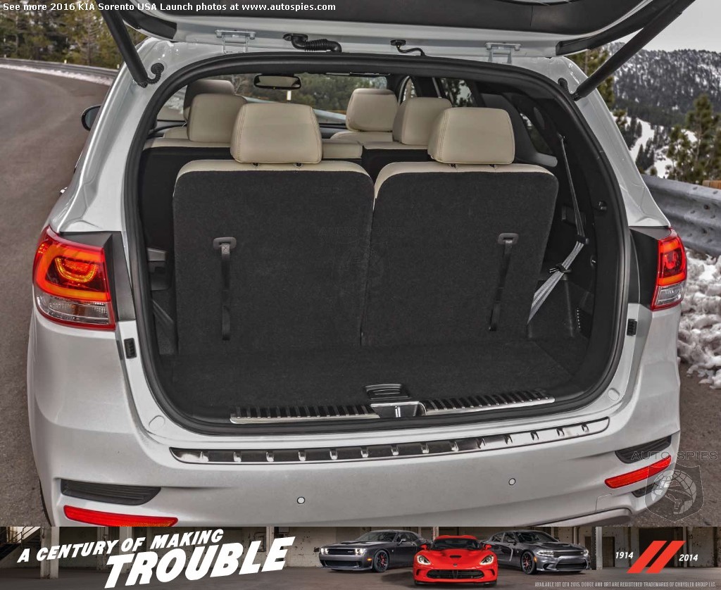Depending on trim level, the ready-for-adventure 2016 Sorento comes with standard 40/20/40 second-row folding five-passenger (4-cylinder models) or 50/50 folding third-row seven-passenger (V6 models) seating configurations. The seating system of the new Sorento is designed to offer optimum comfort and ideal seating positions to fulfill the needs of every occupant. For added luxury, also available are heated and ventilated front seats, heated rear seats, 14-way power driver and 8-way power passenger seats, driver’s seat thigh extension, a 4-way headrest with one-button adjustment, dual-zone HVAC and Kia’s second-generation panoramic sunroof, as well as available premium Nappa leather trim seating surfaces, similar to those found in Kia’s luxury flagship sedan, the K900. Second- and third-row passengers will enjoy enhanced comfort thanks to a 0.5-inch increase in rear passenger space for both rows and a roomier flattened second-row center floor. Access to third-row seating is improved with 1.5 inches of additional boarding space, while headroom throughout the cabin is also increased.