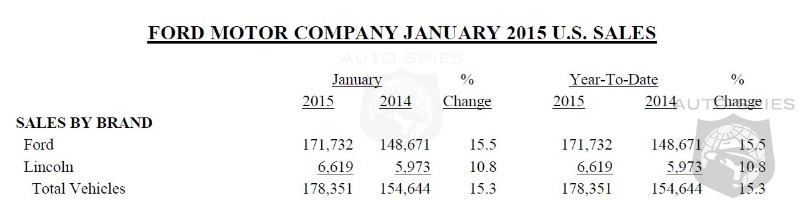 Ford Motor Company posted a 15 percent sales increase in the U.S. in January, with sales of 178,351 vehicles. Retail sales of 128,666 vehicles marked a 13 percent increase, providing the best retail January results since 2004.Retail passenger car sales were up 6 percent, utilities saw a 10 percent increase, and trucks gained 23 percent.