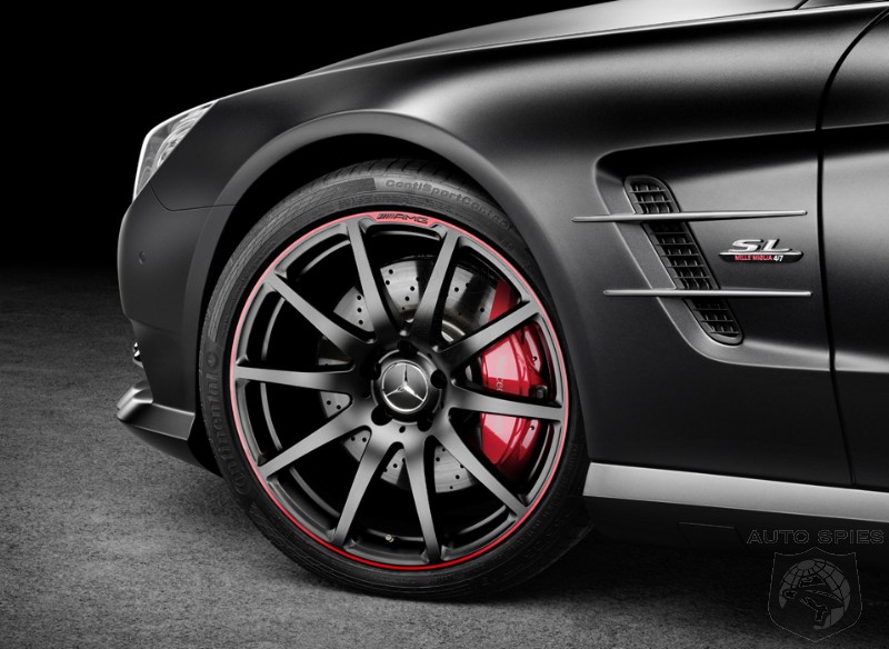 To celebrate, Mercedes-Benz has taken the SL550 and put together a unique package that it believes speaks to the original's success. This means the company's Designo department had a bit of fun. On the outside you'll note a matte black paint with red trim bits, and on the inside you'll see a mixture of black, red and carbon fiber.