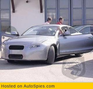 Here are the first spy shots of the Audi A5. This confirms that Audi will build the coupe. The heavy camo covers up a lot, but we can see the TT style sloping roof and frameless windows. Expect the A5 to debut at an auto show early next year eitehr at Detroit or Geneva.