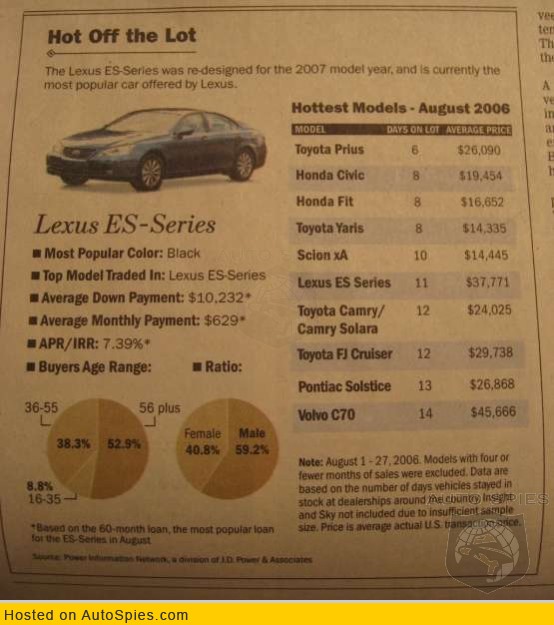 The Wall Street Journal is confirming what we told you a few weeks ago that the new Lexus ES is on fire at dealers around the country.