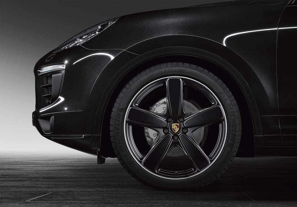 The Cayenne’s new Sport Classic design five-spoke alloy wheels including wheel arch extenders are a distinctive highlight. The wheel dimensions are 10 J x 21 ET 50 (front and rear axle) with 295/35 ZR 21 tyres. The following versions will be available from the end of May (calendar week 22/2015): painted in GT silver metallic, in Platinum (silk gloss) and in black (high-gloss), and from early November (calendar week 45/2015) they will also be available painted in the exterior colour of the car.