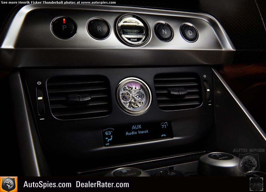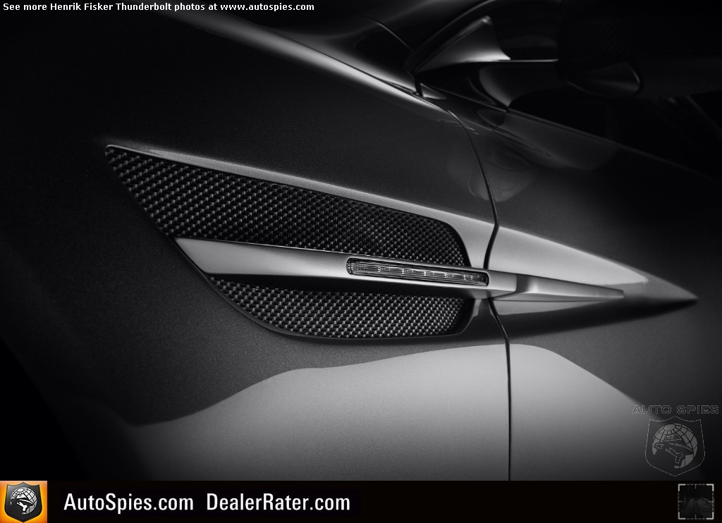 It should be noted the Thunderbolt is in no way affiliated with, sponsored or endorsed by Aston Martin. Developed purely as a design study, the prototype unveiled at Amelia Island is a design study only, and Henrik Fisker's personal view. There will be no commercialization of the prototype shown at Amelia.