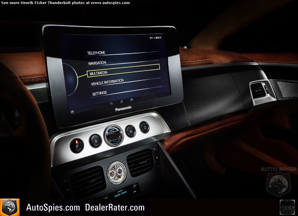 Inside, the changes are no less dramatic. While maintaining a traditional elegance, Thunderbolt's concept interior features class-leading connectivity and user interfaces. Among its range of new appointments, the Thunderbolt concept features the world's first application of Panasonic's 11.6-inch Curved Control Screen in a car, as a result of a research partnership between Panasonic and Henrik Fisker. Designed to reduce reflections and glare, the screen's extraordinary resolution is complimented by the fact that it is adjustable in height according to driver preference.