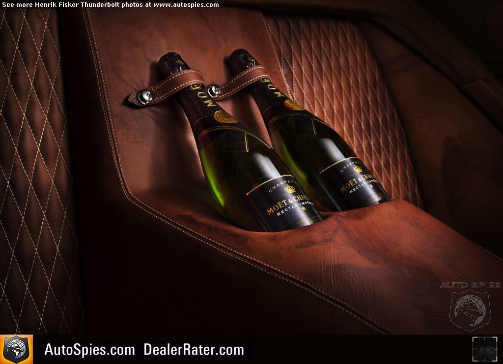 Another outcome of a longstanding partnership between renowned Swiss watch maker Maurice Lacroix and Henrik Fisker, is a Skeleton chronograph integrated into the dash, as well as specially trimmed leather surfaces from Italian furniture manufacturer, Natuzzi. Thunderbolt also includes a unique champagne/wine bottle holder – the first of its kind in a two-seat sports coupe – for securely transporting a bottle or two, to dinner parties as a gift.
