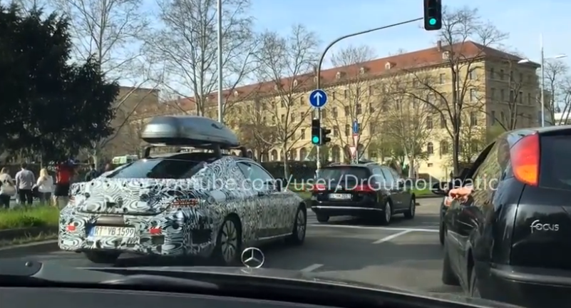 That would be a fully camouflaged C-Class Coupe roaming around Stuttgart. That in of itself is not weird, but the fact this particular C-Class is equipped with a roof box is.