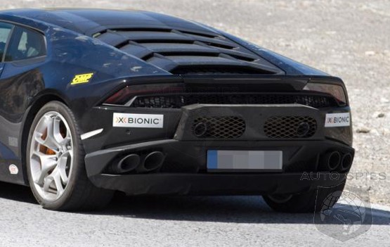 ...Most striking about this prototype are the hidden single exhausts at the rear. Covered with wire mesh, the exhausts are in the same position as those on Lamborghini’s Huracán GT3 racer, although dummy units still exist in the same place as on the standard car.
