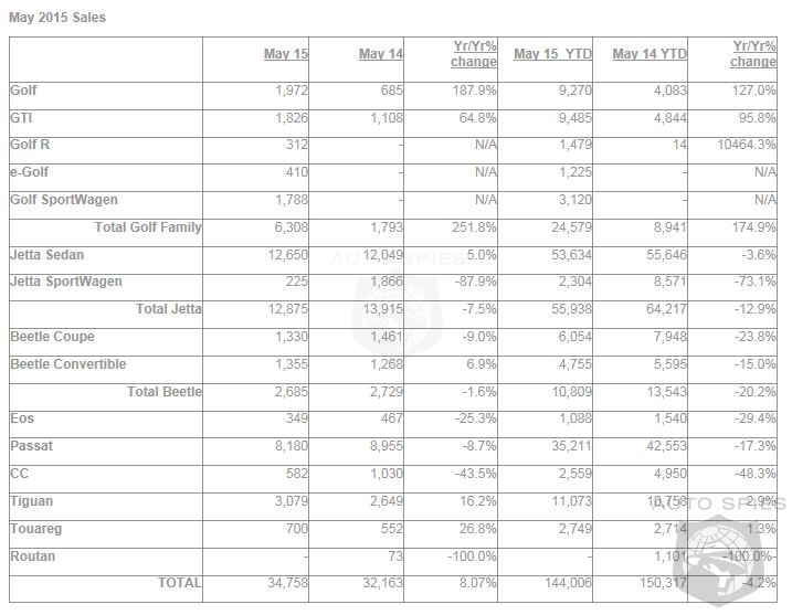 Volkswagen of America, Inc. today reported sales of 34,758 units delivered in May 2015.