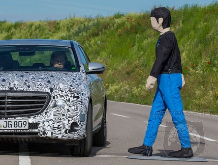 In the latest pics, Mercedes-Benz released several images to the public displaying the upcoming E's safety systems. As you'll see, the company is highlighting its collision avoidance and automatic braking system.