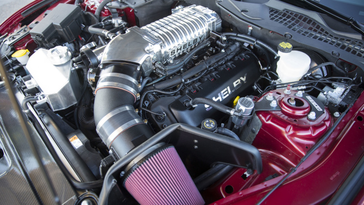 Each 2015 Shelby Super Snake begins as a Ford Mustang GT with a 5.0 liter V8 and Ford Performance supercharger connected to a six speed manual or automatic transmission. Ford Mustangs are manufactured in Ford Motor Company's Flat Rock, Michigan plant and the Shelby Super Snake is built at Shelby American in Las Vegas.