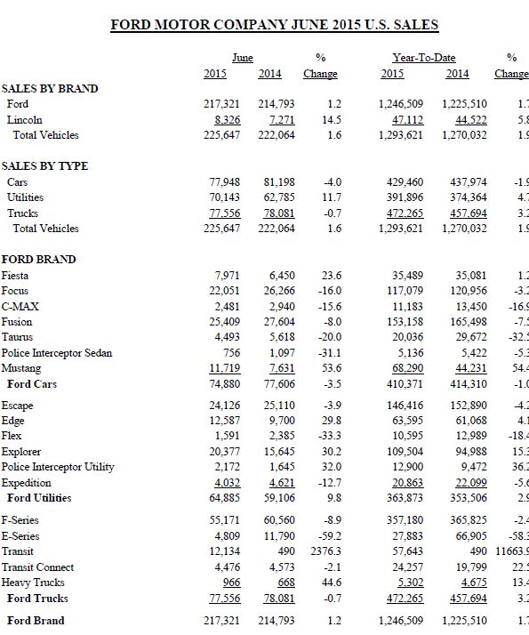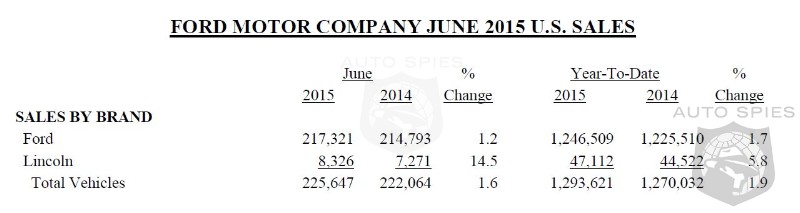 Strong consumer demand for its newest products pushed Ford Motor Company total U.S. June sales 2 percent higher, to 225,647 vehicles sold.