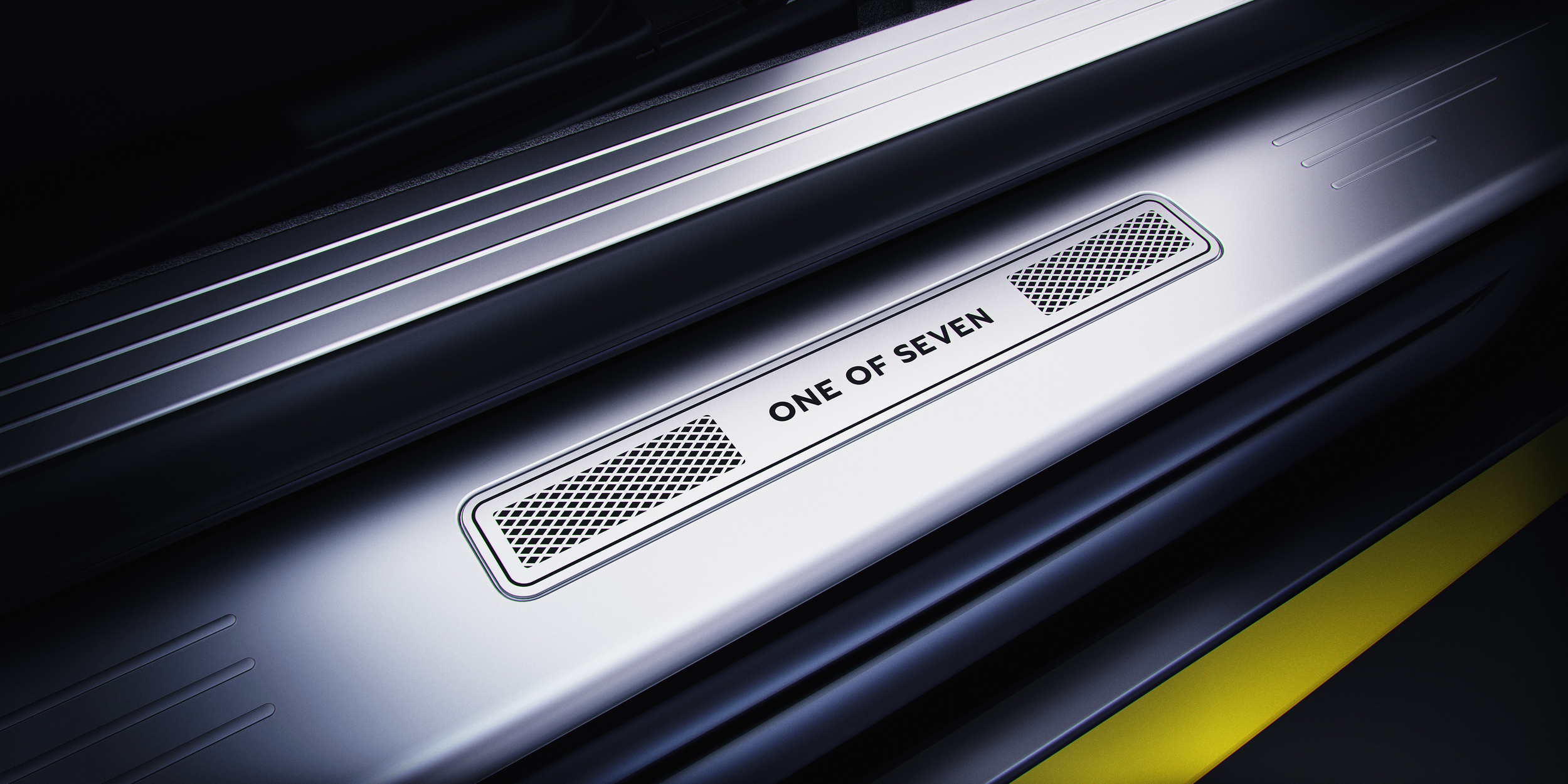 Similarly, Mulliner has matched the hide and thread to Breitling's signature yellow and designed a series of logos and graphics for the headrests that highlight the number of each car and the jet that inspired it. The tread plate plaques are also individually numbered.