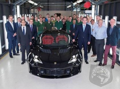 First Lotus Evora 400 drives off the assembly line at Hethel