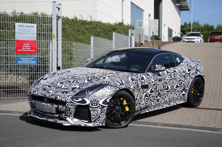 From what we can tell via the first spy images, the F-Type coupe will receive some nice visual updates. Up front it receives a massive front splitter and it appears that the front venting is much larger to get cold air into the engine bay. Around the back is a fixed rear spoiler and what appears to be a proper rear diffuser to channel air. You'll notice the wheel and tire package is fat and the brakes being worn on the test are the carbon ceramics currently offered on the top of the line V8 F-Type R Coupe.