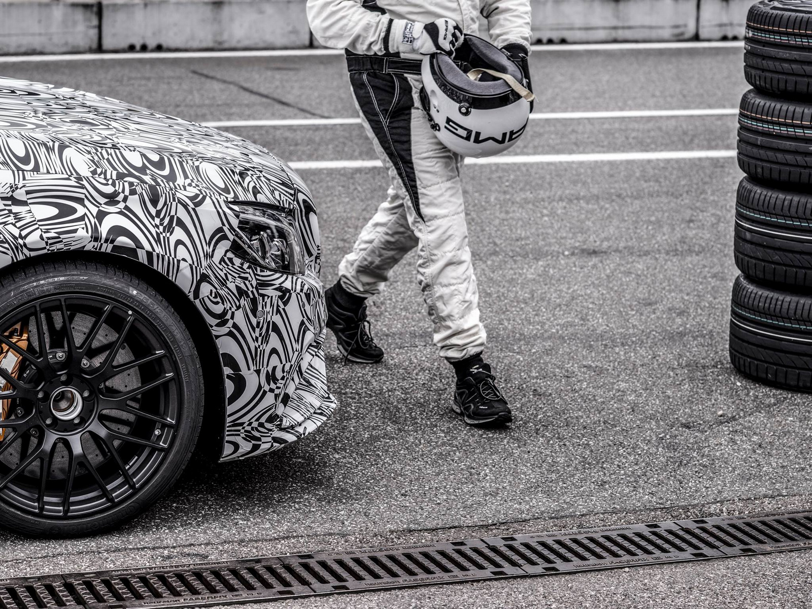 I have to admit, Mercedes-AMG totally fooled me on this one. Although I do try my best to not wildly speculate and provide you with the best possible insight, the three-point star nailed me this go around. That's because when it recently debuted a teaser clip NOT showing the latest AMG working its way around a track I figured it would make sense for the AMG GT Black Series to make an appearance. I mean, we've seen TONS of spy shots of it, right? The timing is right for a Frankfurt Motor Show (IAA) debut. Turns out I whiffed. That's mostly because the company just released a batch of teaser pics of what appears to be a follow up to the already crazy Mercedes-AMG C63 S. While we cannot be sure exactly what AMG has in store, we're thinking it's one of two things. The angles and pictures show just enough to leave this up in the air.It's either 1) the C63 Coupe, or 2) the C63 Black Series in sedan form. Considering the standard coupe hasn't appeared yet, I am more inclined to think its the Black Series. Check out those bulging fenders and how short the front door is — you can see the handle in one shot.