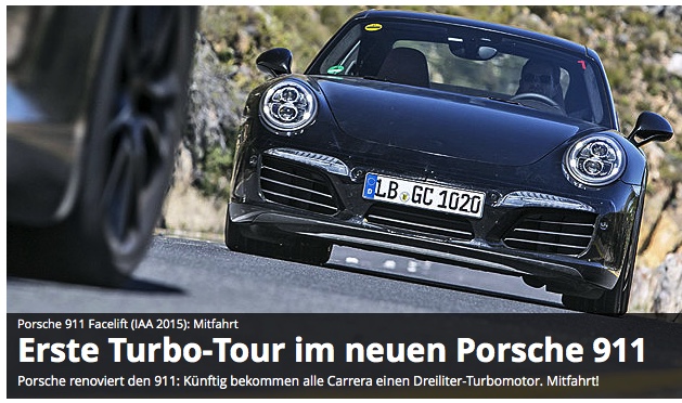 Translated from German by Google Translate-You have to look a very accurate. The cosmetic measures the revamped Porsche 911 (premiere at the IAA in Frankfurt in September 2015) are manageable. Most striking are the newly designed xenon headlamps and the rear spoiler with longitudinal rather than transverse slats. The innovations are mainly under the sheet - and define the dynamics again.