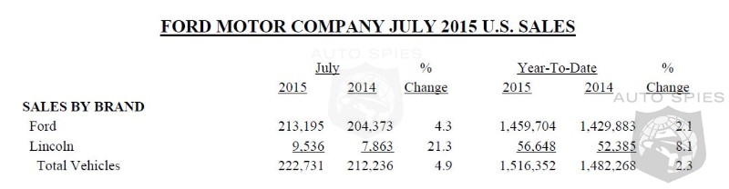 Strong demand for its newest products lifted Ford Motor Company to its best July U.S. sales performance since 2006, with a total of 222,731 vehicles sold last month. Retail sales increased 5 percent.“We continue seeing even stronger demand for our newest products, especially F-150, Explorer, Edge, Mustang and Transit,” said Mark LaNeve, Ford vice president, U.S. Marketing, Sales and Service. “With continued improvement in inventory, F-Series retail momentum continued building in July. Customers truly value the new F-150’s capability, performance and fuel efficiency.”