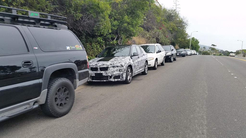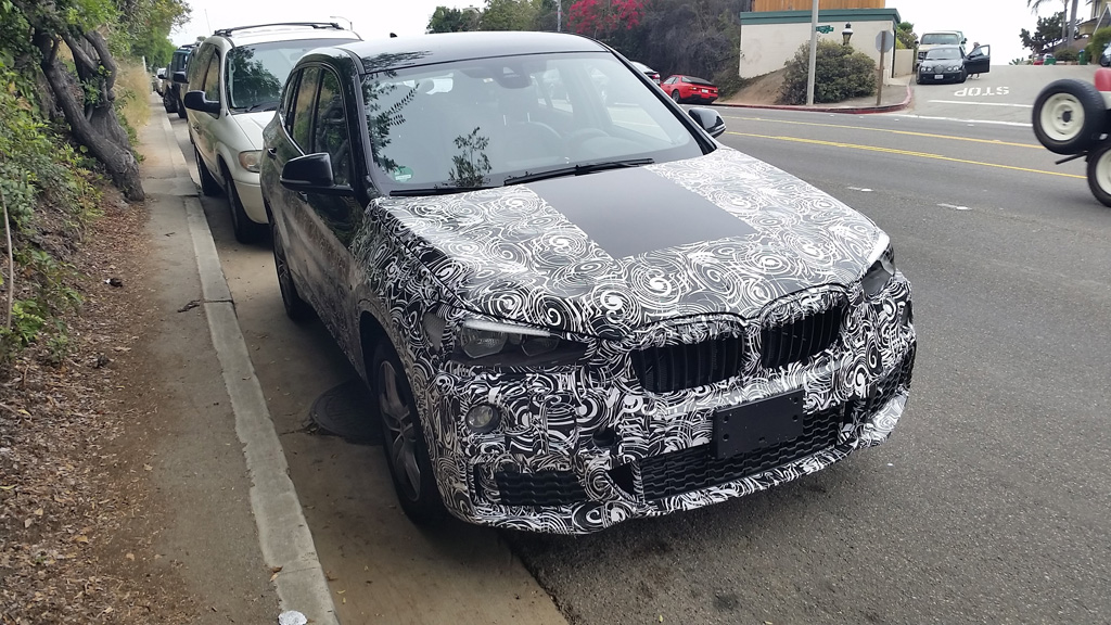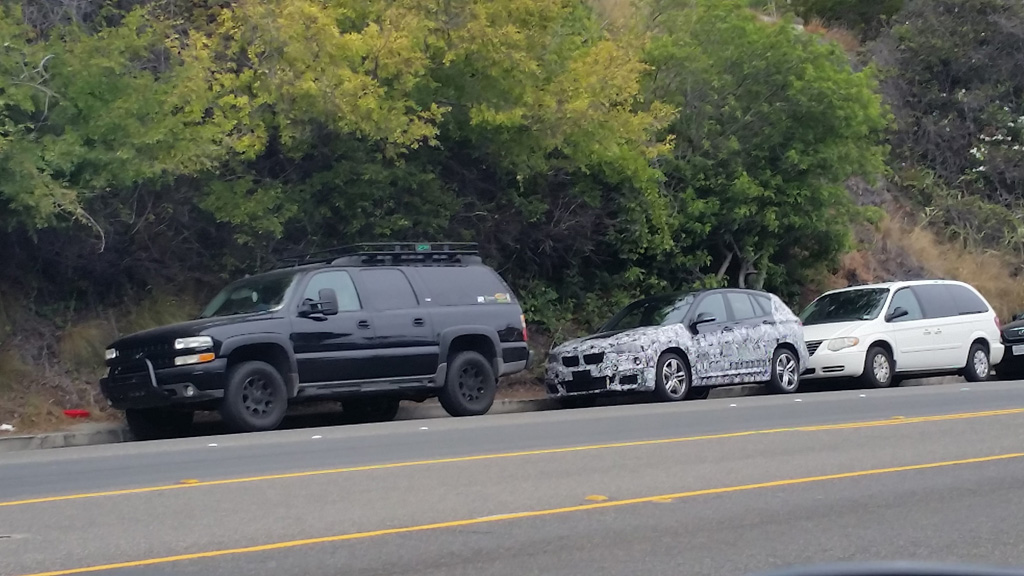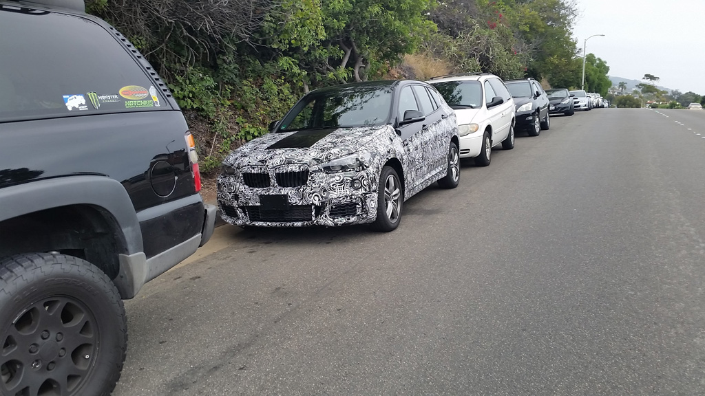 The BMW X1 is one of those vehicles that never got a proper start in the US market. By the time it took BMW to get the vehicle over to the States, so much time had passed since it was launched abroad that it seemed, frankly, outdated. While I know Agent 001 was a fan of the X1, it didn't exactly light my fire. Looking a bit goofy and quite small on the inside, to me it wasn't much of anything aside from a roundel-equipped cute ute. Now though it appears BMW has done it right. With the all-new X1 the vehicle has certainly matured and boasts a handsome design. **SEE the best pictures of the BMW X1 HERE!Spied by our friend Fred Khaz, the all-new X1 was snapped on our shores for the first time. Sporting some camouflage — really, what's the point guys? — it was parked on a SoCal street. While it may look quite tiny next to the lifted Chevrolet Suburban, if you compare its size to the Chrysler minivan behind it, that should give you a pretty good idea of its scale.