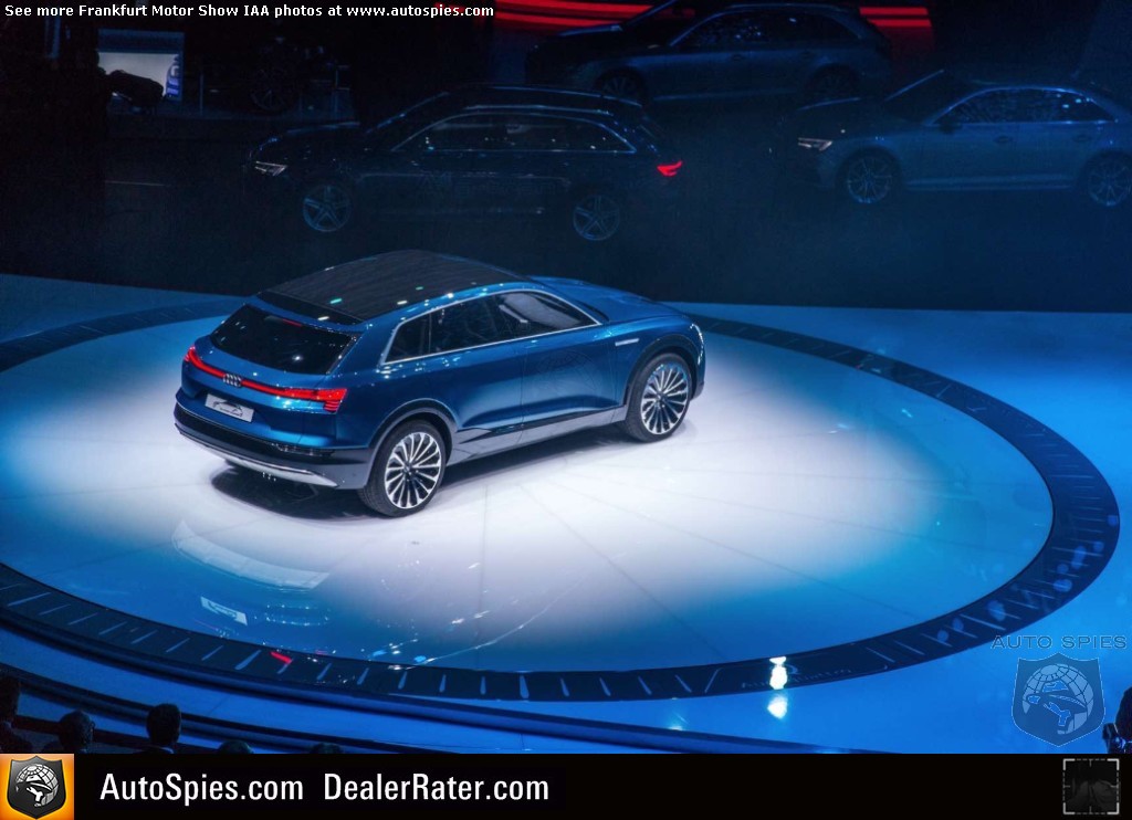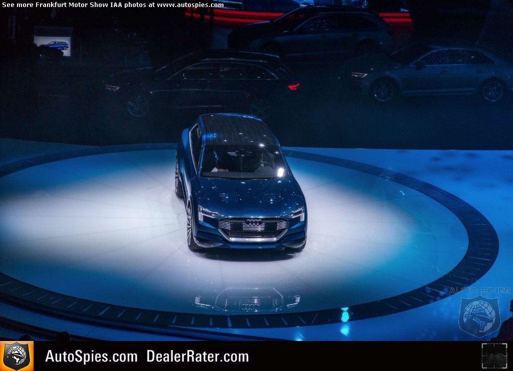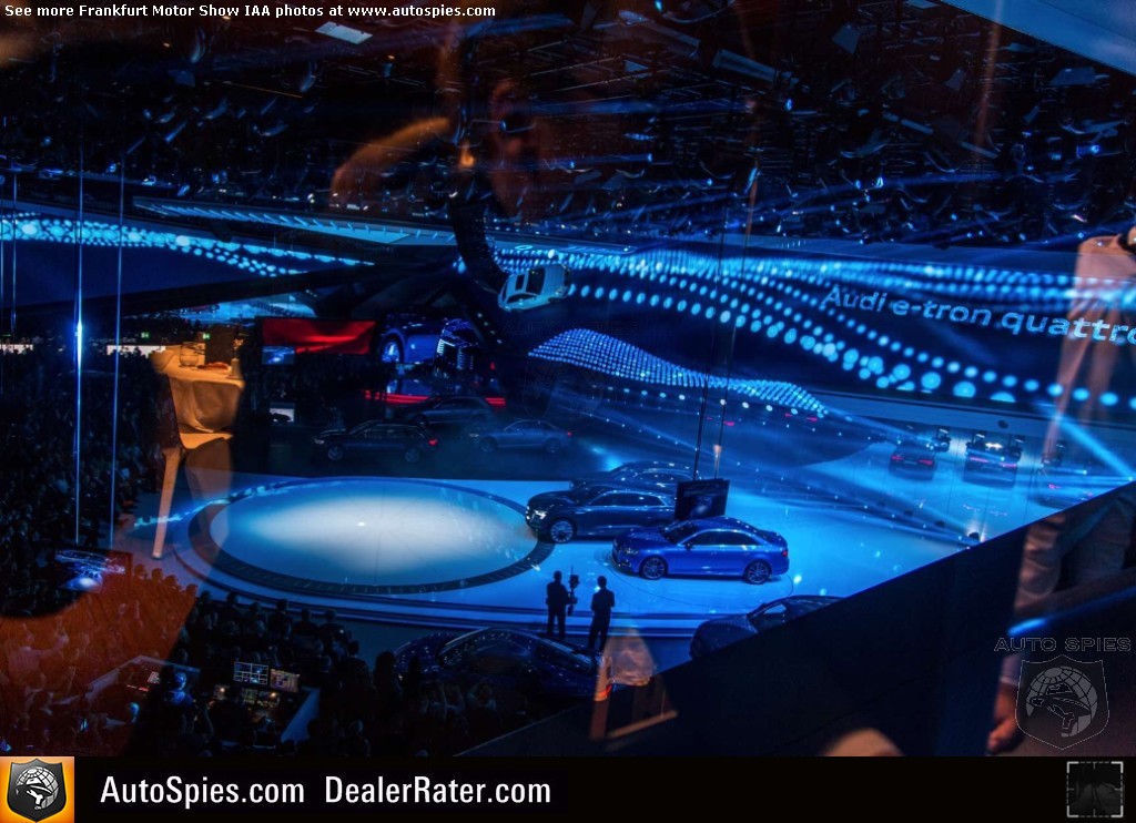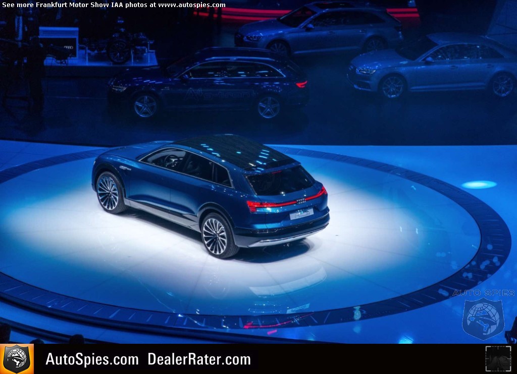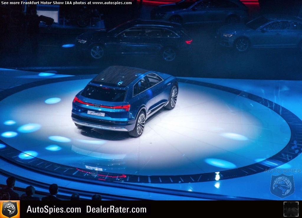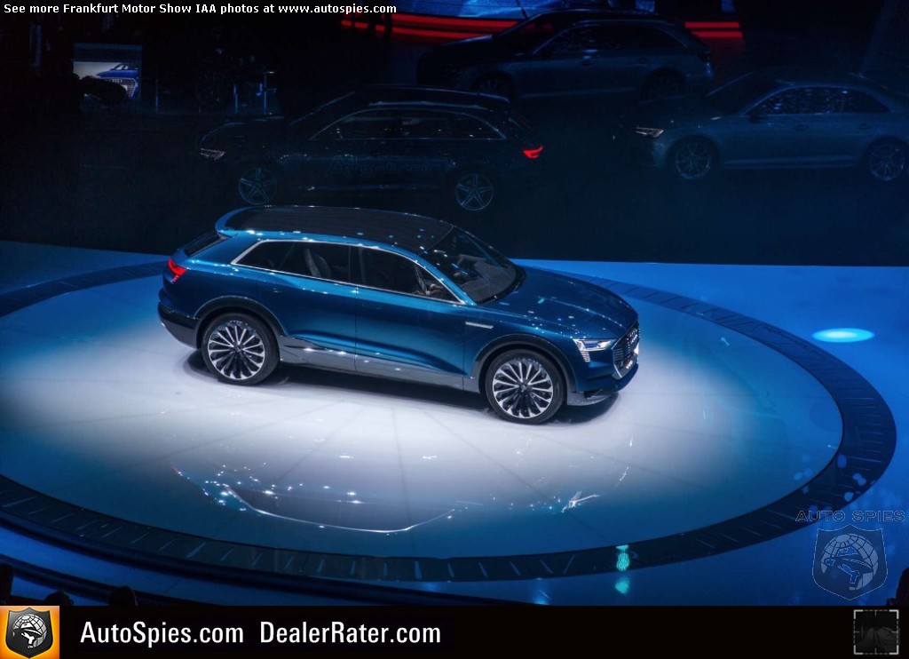 If you've been sitting at the office or at home wishing you could be at the 2015 Frankfurt Motor Show (IAA), have no fear. Agent 001's on the case. One of the shows big debuts is the all-new Audi e-tron quattro concept. This all-electric sport-utility vehicle gives us a glimpse into what Audi is thinking up in terms of performance as well as design for its upcoming vehicles.2015 Frankfurt Motor Show (IAA)**READ the Audi e-tron quattro concept's press release HERE!Considering we know the company is working on an all-new, fully electric Q6 this may be the four rings' way of testing the waters. Just a refresher of the key facts. Total system output is around the 430 horsepower area with boost taking you up to about 500 ponies and 590 lb.-ft. of torque. Zero to 60 happens in 4.6 seconds. According to Audi the vehicle can do about 310 miles on a full charge and it will take approximately 50 minutes to juice up. While this all sounds great, make sure to scope out 001's up close and personal images, below. 2015 Frankfurt Motor Show (IAA)