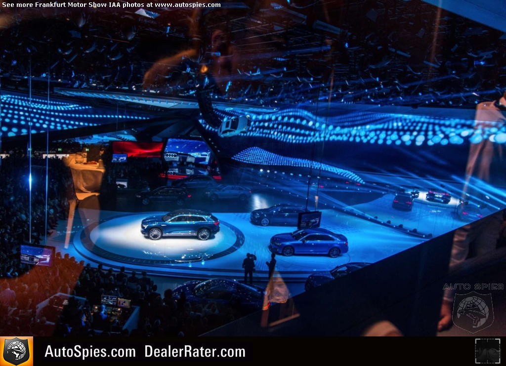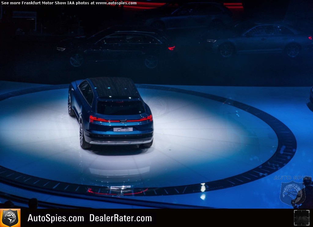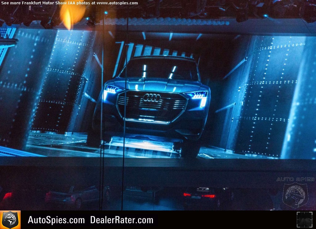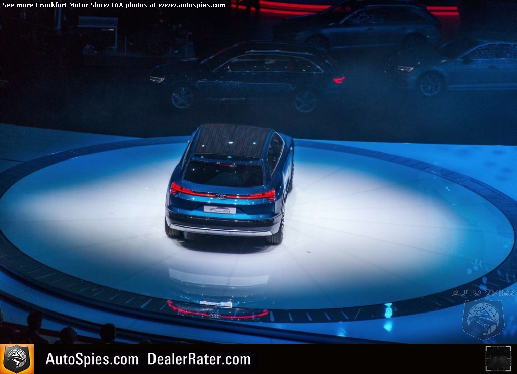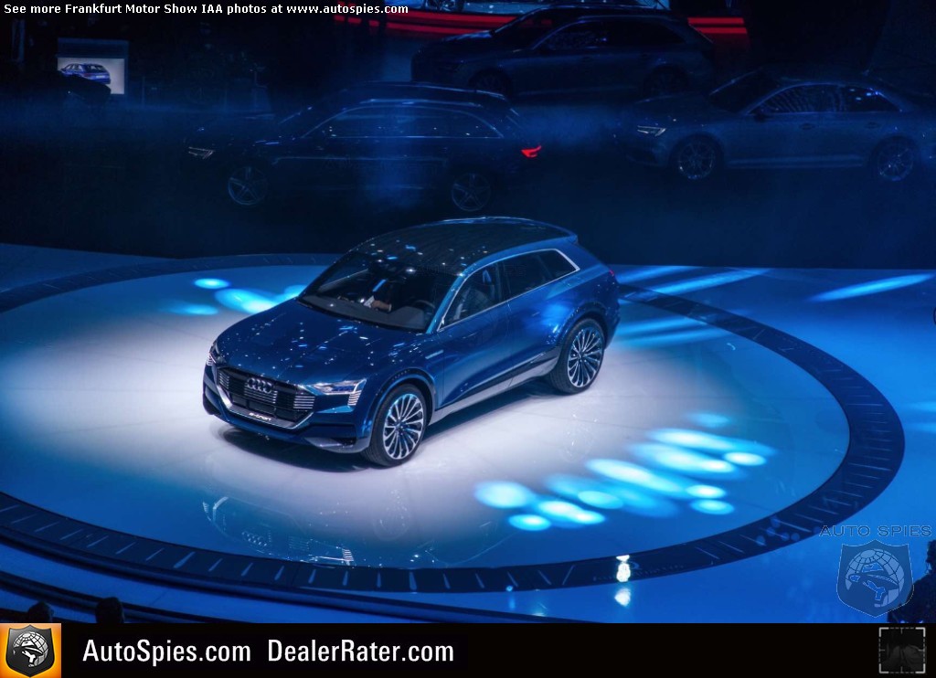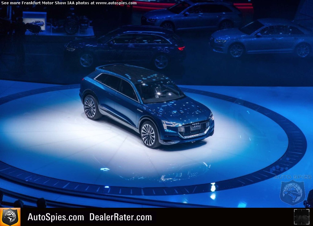 If you've been sitting at the office or at home wishing you could be at the 2015 Frankfurt Motor Show (IAA), have no fear. Agent 001's on the case. One of the shows big debuts is the all-new Audi e-tron quattro concept. This all-electric sport-utility vehicle gives us a glimpse into what Audi is thinking up in terms of performance as well as design for its upcoming vehicles.2015 Frankfurt Motor Show (IAA)**READ the Audi e-tron quattro concept's press release HERE!Considering we know the company is working on an all-new, fully electric Q6 this may be the four rings' way of testing the waters. Just a refresher of the key facts. Total system output is around the 430 horsepower area with boost taking you up to about 500 ponies and 590 lb.-ft. of torque. Zero to 60 happens in 4.6 seconds. According to Audi the vehicle can do about 310 miles on a full charge and it will take approximately 50 minutes to juice up. While this all sounds great, make sure to scope out 001's up close and personal images, below. 2015 Frankfurt Motor Show (IAA)