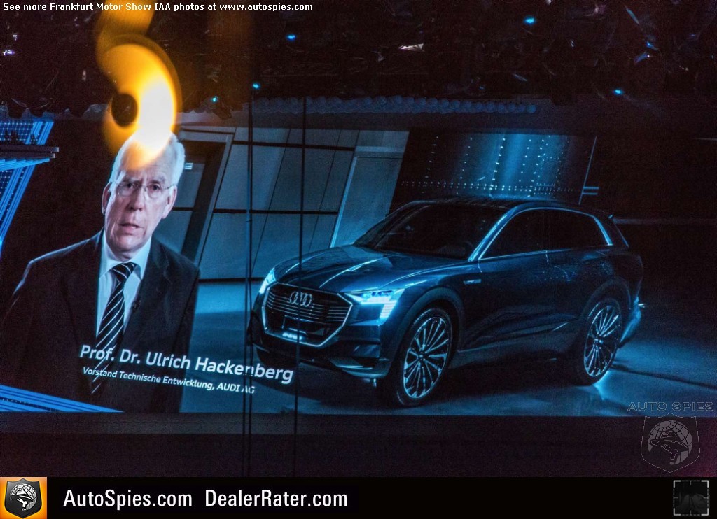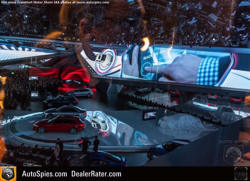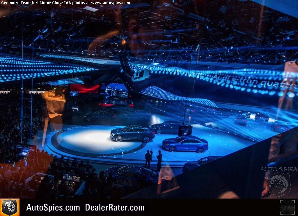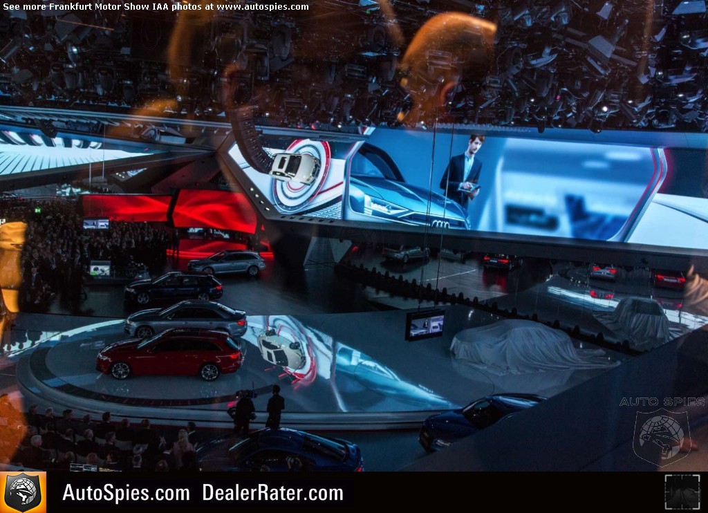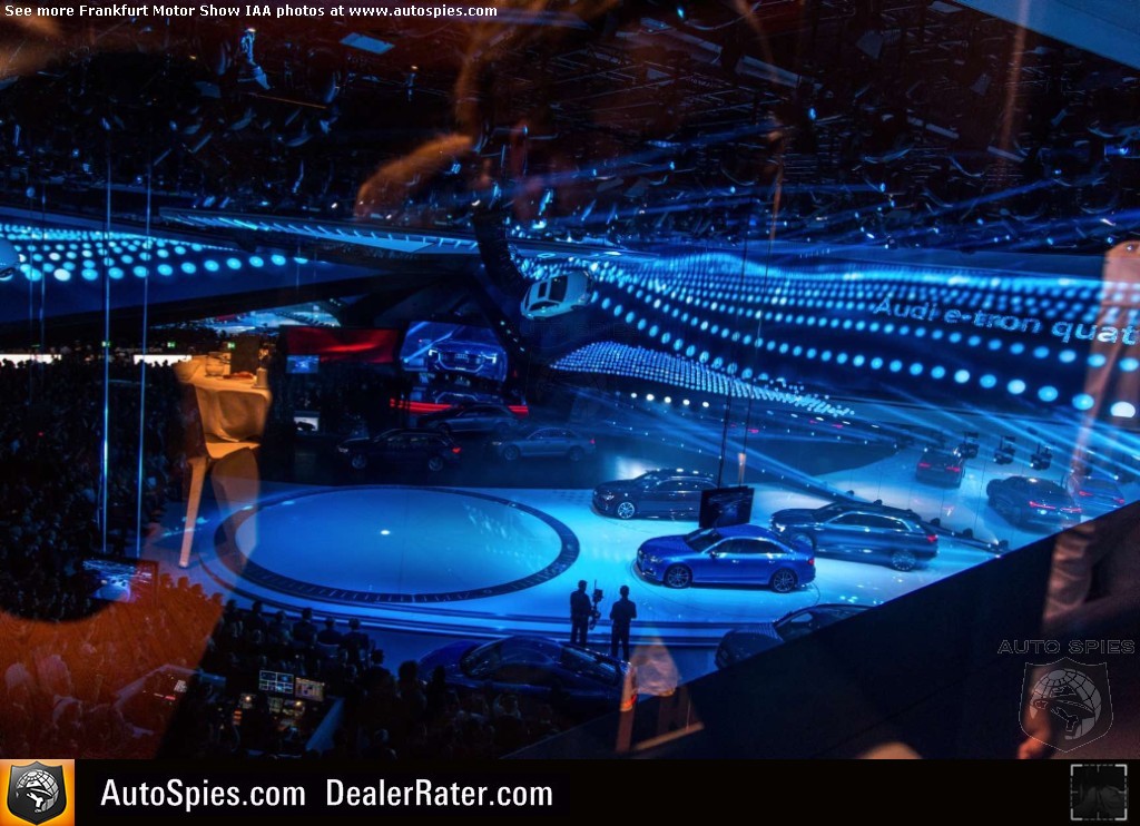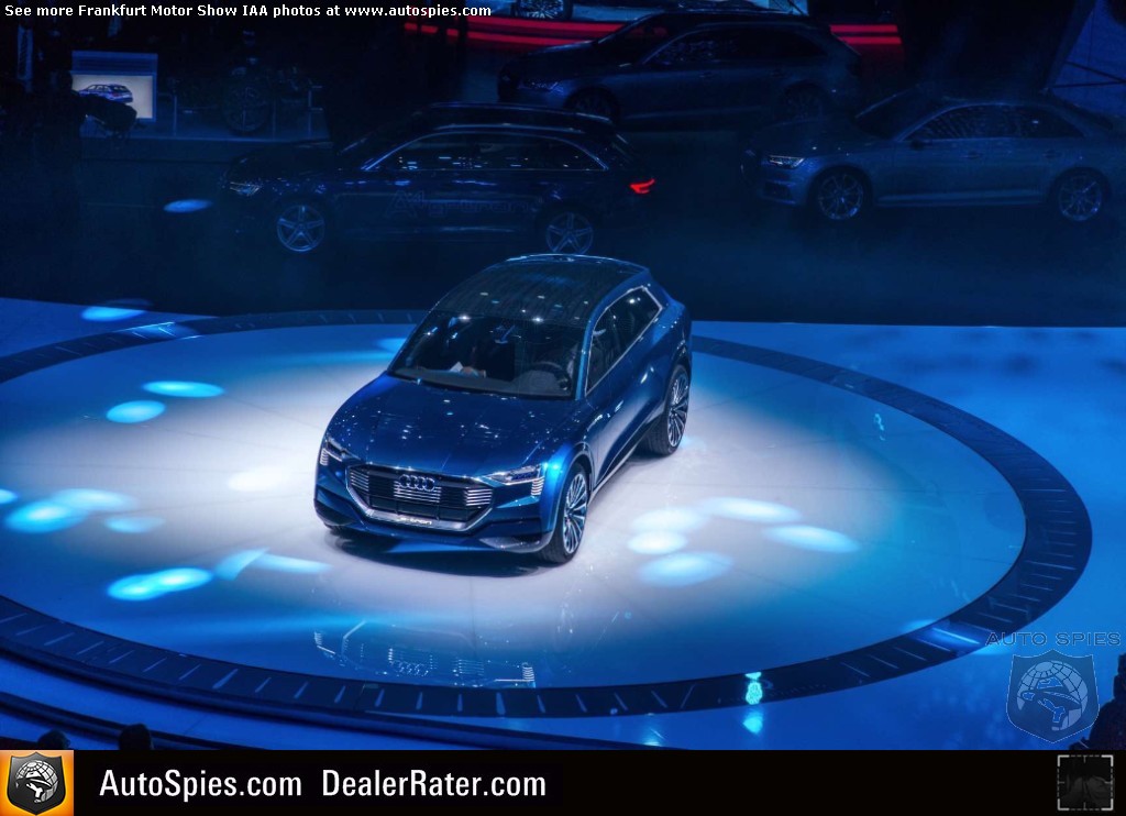 If you've been sitting at the office or at home wishing you could be at the 2015 Frankfurt Motor Show (IAA), have no fear. Agent 001's on the case. One of the shows big debuts is the all-new Audi e-tron quattro concept. This all-electric sport-utility vehicle gives us a glimpse into what Audi is thinking up in terms of performance as well as design for its upcoming vehicles.2015 Frankfurt Motor Show (IAA)**READ the Audi e-tron quattro concept's press release HERE!Considering we know the company is working on an all-new, fully electric Q6 this may be the four rings' way of testing the waters. Just a refresher of the key facts. Total system output is around the 430 horsepower area with boost taking you up to about 500 ponies and 590 lb.-ft. of torque. Zero to 60 happens in 4.6 seconds. According to Audi the vehicle can do about 310 miles on a full charge and it will take approximately 50 minutes to juice up. While this all sounds great, make sure to scope out 001's up close and personal images, below. 2015 Frankfurt Motor Show (IAA)