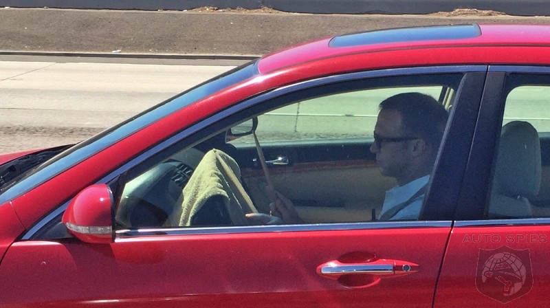 Spotted by our very own Agent 001 today in SoCal, he nabbed a driver that was drumming behind the wheel. Unlike what you normally see — someone pounding on the steering wheel and getting into the song — this gentleman took it to another level. He actually put a towel on the steering wheel to protect it from, yes, real-life drumsticks.