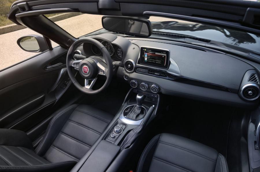 For an open-air driving experience, the Fiat 124 Spider's soft convertible top is easy to operate and requires minimal force, much like the original Spider's top.