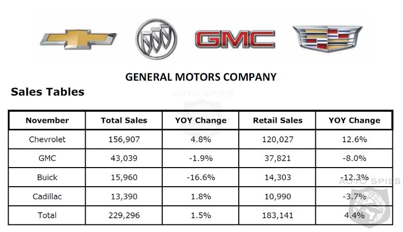 General Motors’ Chevrolet, Buick, GMC and Cadillac brands sold 229,296 vehicles in the United States in November 2015, up 2 percent year over year, with two fewer selling days and sales incentives below the industry average. On a selling-day-adjusted basis, GM’s total sales were up 10 percent.Sales of Chevrolet trucks rose 10 percent for the 20th consecutive monthly increase. Chevrolet crossovers were up 35 percent for the 12th consecutive monthly increase.