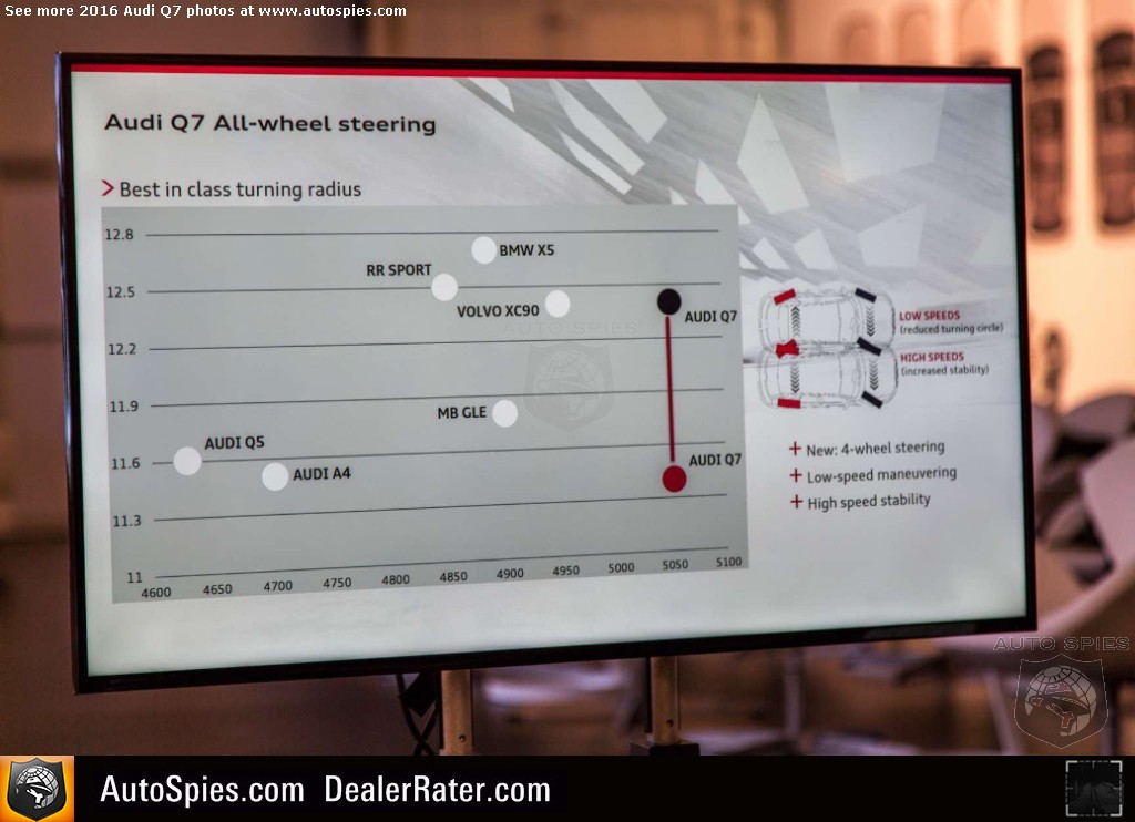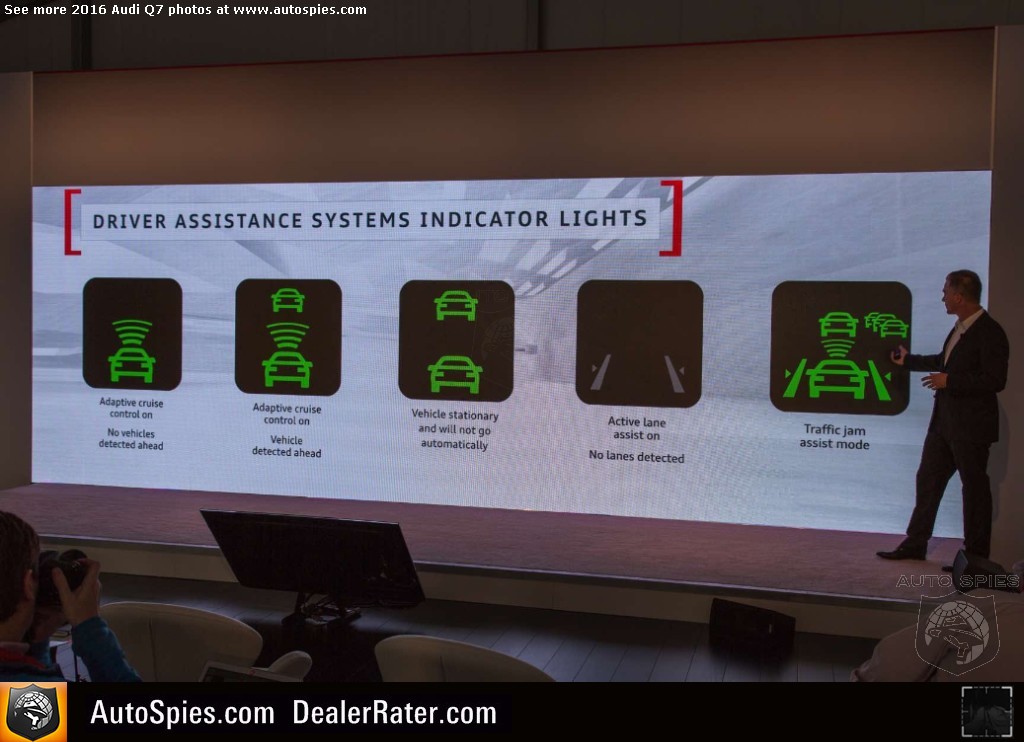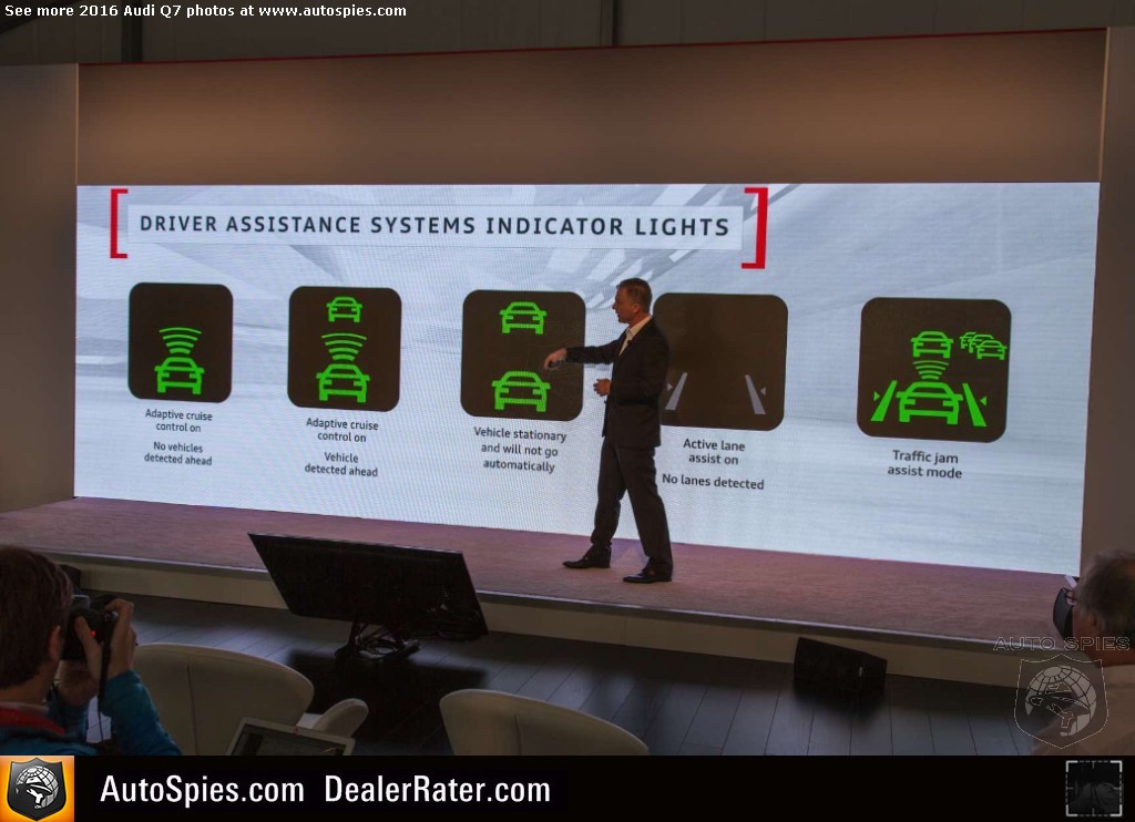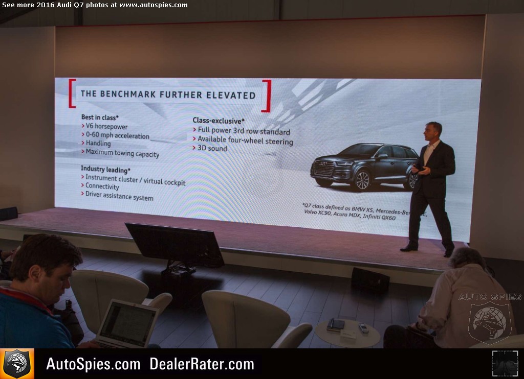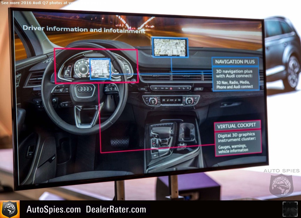 As noted in my previous thread, there's been incredibly strong interest in the all-new Audi Q7 sport-utility vehicle. Following up on a very successful first-gen product, the four rings certainly has its work cut out for itself. The goods news though is that it seems Audi is combating this with the best way it knows how. It's going to beat consumers over the head with technology. 2016 Audi Q7Though that may sound like a negative, it's actually a positive. That's because I am pretty sure that a lot of this tech that you'll see below is actually super helpful to the typical buyer of a product like a Q7. Will I need it? No. But perhaps the mother or father of four that has to be making trips to the grocery store, the mall and whatever else will. Check out just a sampling of Agent 001's photos coming to LIVE from Q7 product launch in northern California. 2016 Audi Q7