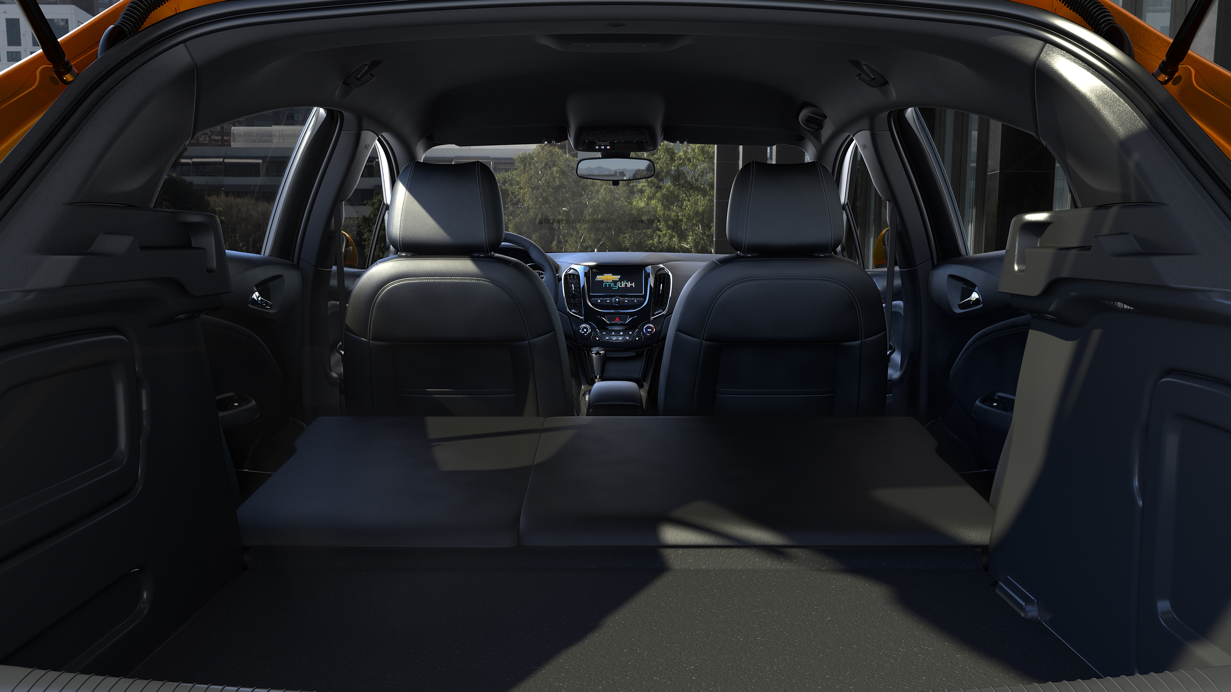 The Cruze Hatch has the same, class-leading 106.3-inch (2,700 mm) wheelbase as sedan models, but features a unique roof and rear-end structure – including wraparound taillamps and an integrated spoiler at the top of the liftgate. It opens to offer 18.5 cubic feet (524 liters) of cargo space behind the rear seat. With the rear seat folded, cargo space expands to 42 cubic feet (1,189 liters).