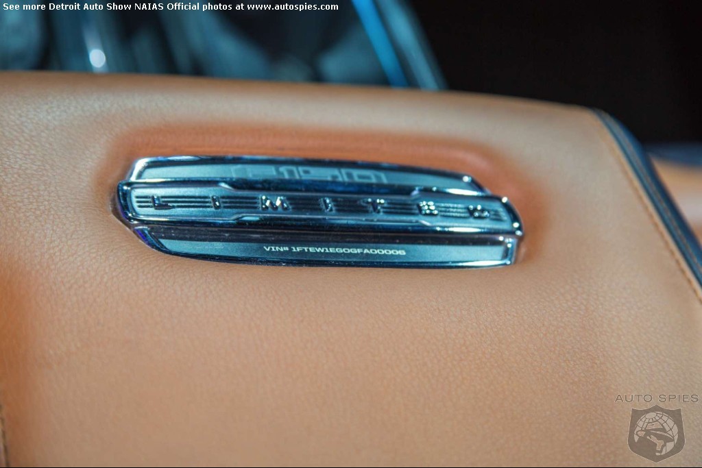 The interior is further differentiated from other F-150 models with a laser-engraved VIN plate on the center console lid including production number. Unique front and rear floor mats, unique instrument cluster face, genuine fiddleback eucalyptus, and aluminum interior accents and unique scuff plates with ice blue backlighting further distinguish the Limited model.