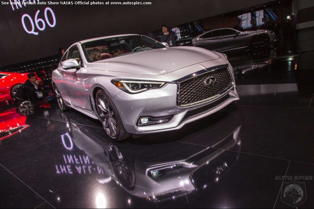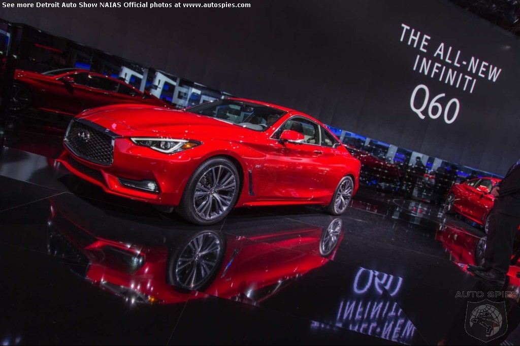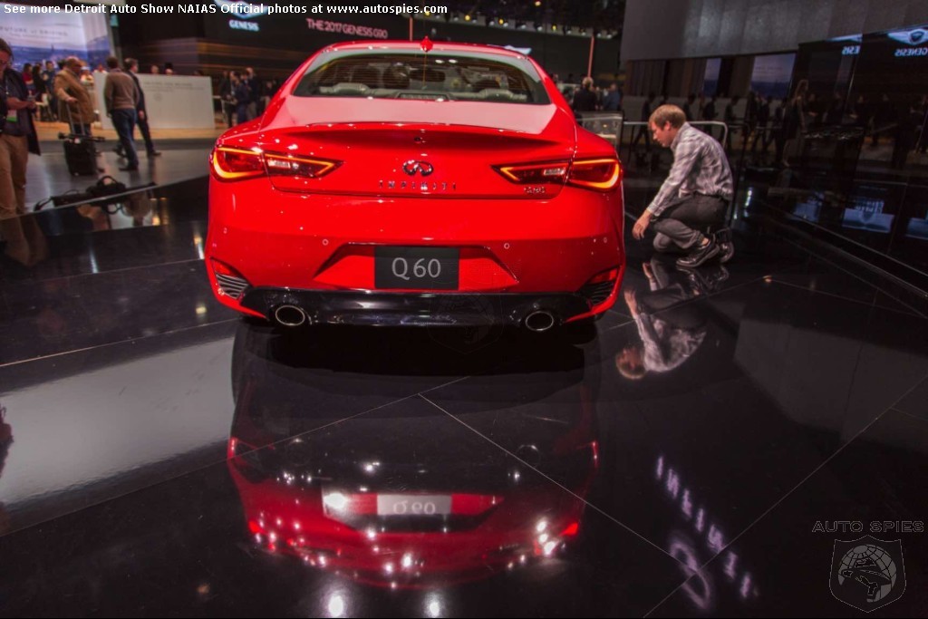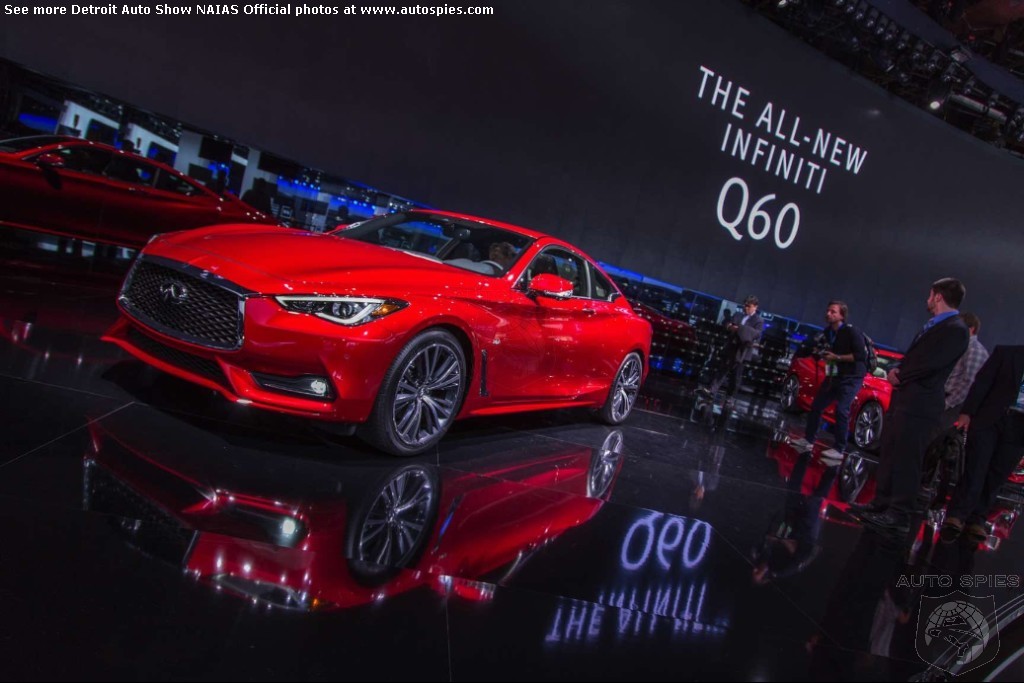 Leading up to the 2016 Detroit Auto Show (NAIAS), the Infiniti Q60's BIG surprise was essentially demolished. That's because Spies snapped the vehicle as it was in the middle of a videoshoot. Oops. Detroit Auto Show (NAIAS) Photo Gallery**READ all about the all-new Infiniti Q60 Coupe HERE!As I've noted previously, the Q60 Coupe has big shoes to fill. That's because the G37 was a hot seller that made everyone on the block want to put an Infiniti in the driveway. The Q50? Not so much. That's why the debut and launch of the Q60 is something we're keeping a close eye on. While we were intrigued after we saw the vehicle's initial studio shots we wanted to show you the very best images on the 'net to gauge your interest in the all-new Q60. So, what do you think, Spies? Is the all-new Q60 something that tickles your fancy or will you be passing it over? Let us know in the comments below, is the Q60 a STUD or DUD? Stay tuned to AutoSpies.com for the latest breaking news related to the 2016 Detroit Auto Show (NAIAS)!The 2016 Detroit Auto Show photo galleries are sponsored by Lexus.Detroit Auto Show (NAIAS) Photo Gallery
