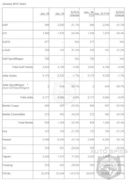 Volkswagen of America, Inc. (VWoA) today reported sales of 20,079 units delivered in January 2016. The Tiguan produced the best January results on record for the vehicle with 2,528 vehicles delivered, a 71.6 percent increase. “We are encouraged by the strong performance of the Tiguan,” said Mark McNabb, chief operating officer, Volkswagen of America. “January sales numbers were down due to the seasonal nature of the fleet business. Despite that and the weather conditions in the Northeast portion of the country, Volkswagen dealers improved in terms of retail business.”