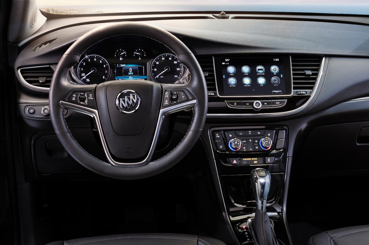 Push-button start, keyless unlock via the exterior door handles and an 8-inch color touchscreen highlight the Encore’s roster of new standard features.