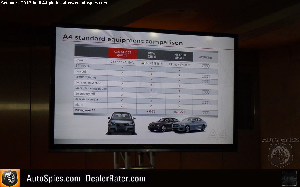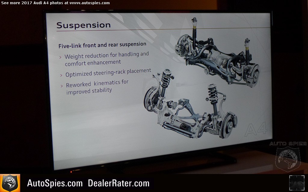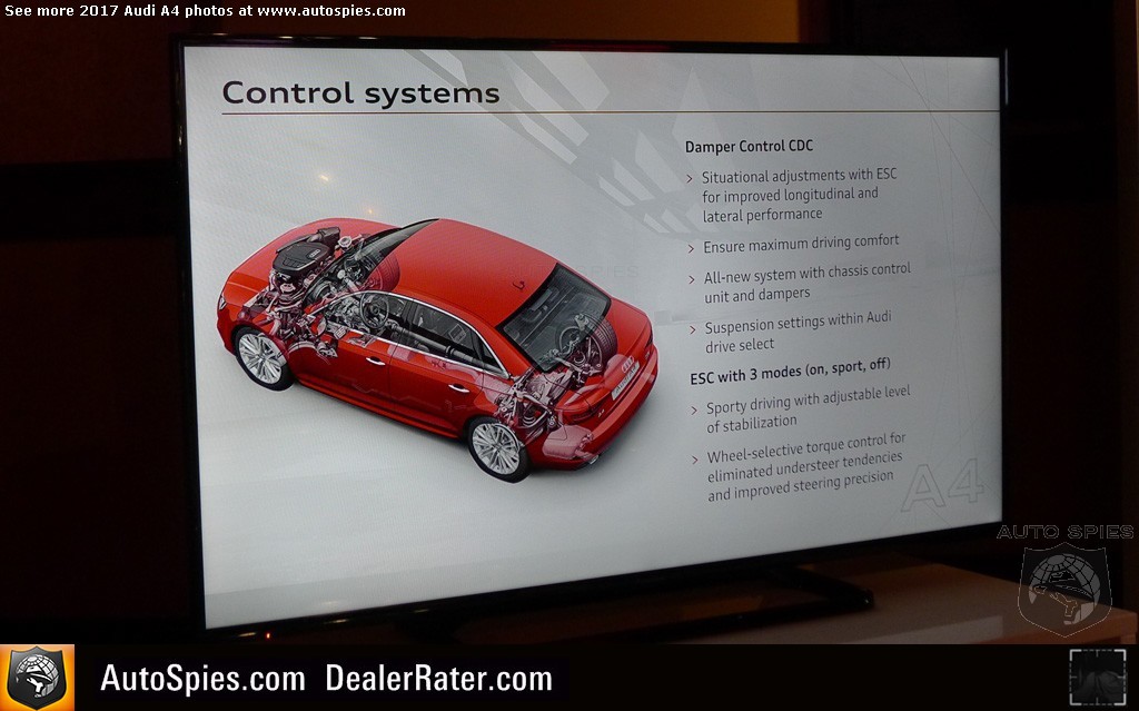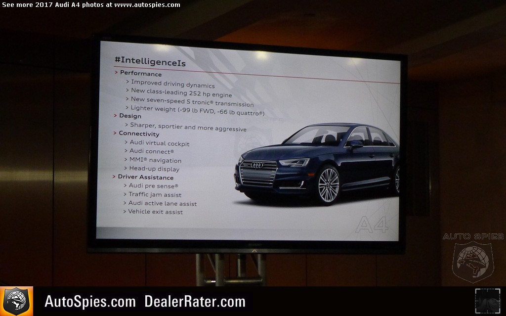While I like to think that I do a pretty good job at providing detail when I review an automobile, I know that there's no way I can get it all. Otherwise, the story would be 2,500+ words long and who wants to read all of that?Also we know there's a lot of pretty cool things that slip through the cracks. Remember, these cars are put through an intensive research and development process that can last upwards of two to three years. 2017 Audi A4**Read Agent 00R's review of the all-new A4In order to do our best to deliver you the facts straight from the best source — the manufacturer itself — we've been providing you with these 101 series stories post launch. That said, scope out EVERYTHING that Audi wants you to know about the 2017 A4. **But wait, there's more! No, seriously, there is. Make sure to scan through our HUGE photo gallery of A4-specific information. It's a Duesey!2017 Audi A4