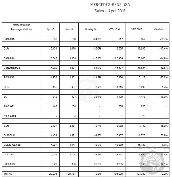 Mercedes-Benz USA (MBUSA) today reported best-ever April sales with 29,236 vehicles sold, up 0.2% for the month. Vans reported 2,589 units, and smart reported 466 units for the month, bringing MBUSA grand total to 32,291 vehicles for the month and 116,600 sold year-to-date."We are heading into a strong second-quarter with a minimum of nine new model launches in the months ahead," said Dietmar Exler, president and CEO of MBUSA. "We expect to see strong sales momentum as we move into the summer months."