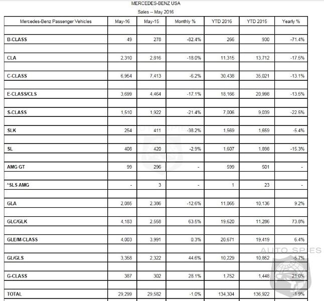 Mercedes-Benz USA today reported May sales of 29,299 vehicles, down 1.0% for the month. Mercedes-Benz Vans reported 2,848 units, and smart reported 420 units for the month, bringing MBUSA grand total to 32,567 vehicles for the month and 149,167 sold year-to-date."Sales continue at a steady pace in the second-quarter," said Dietmar Exler, president and CEO of MBUSA. "Excitement is building as we look toward the coming months with the launch of three new dream cars, including the S-Class Cabriolet, SL and SLC Roadsters and the all-new E-Class Sedan."