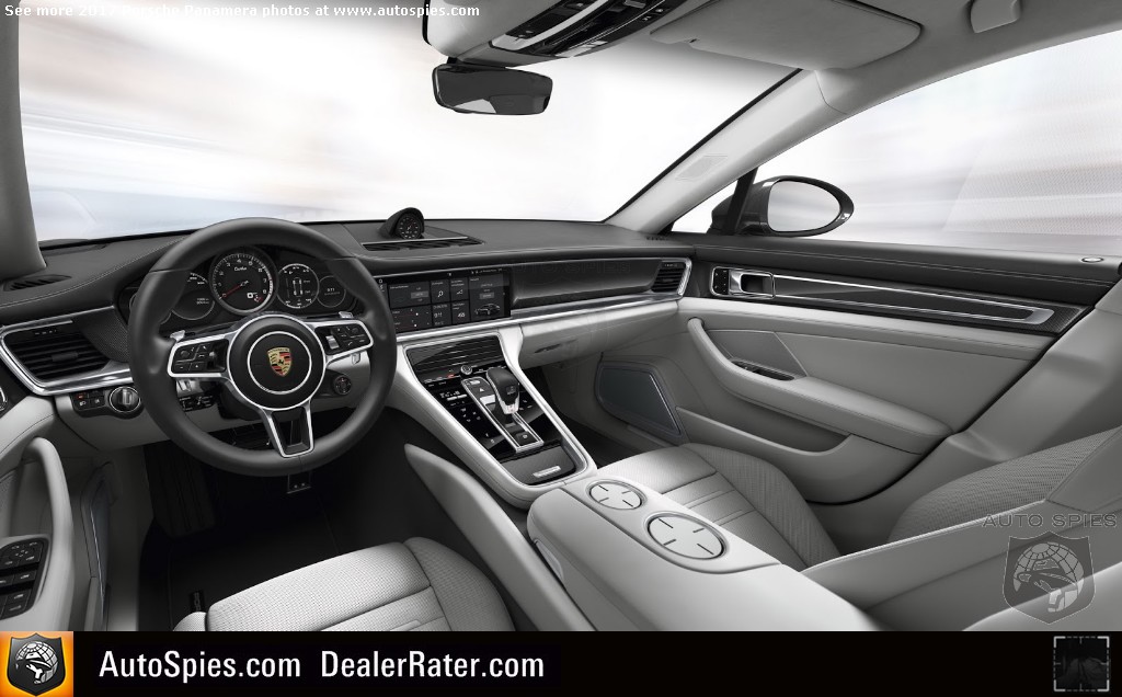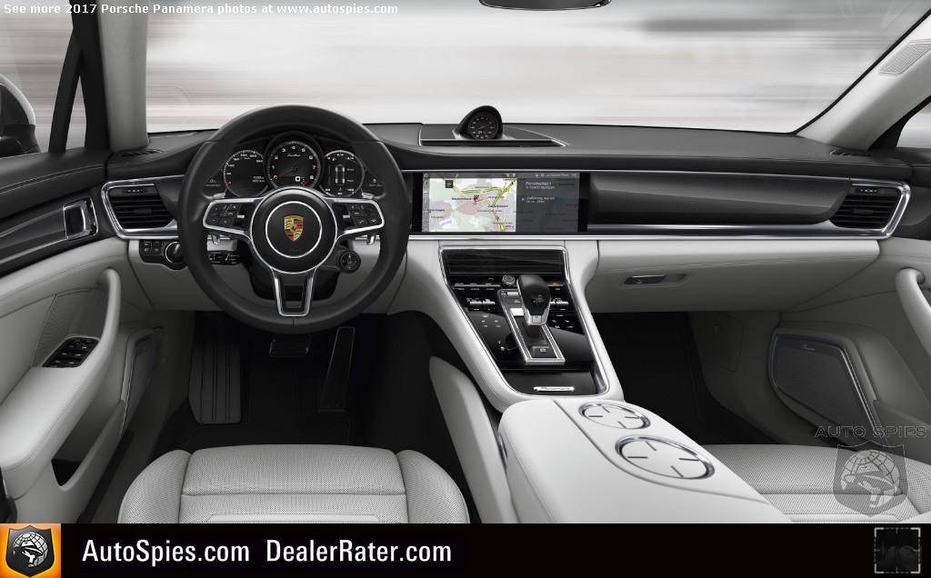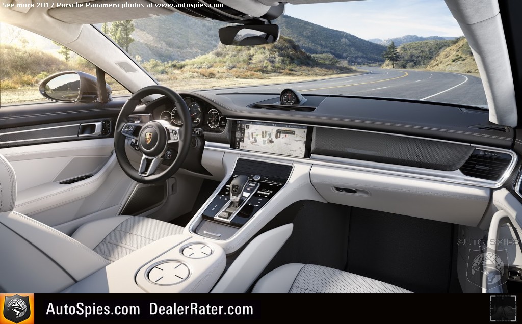 This has all changed with the second-gen Panamera that gets a massive infotainment display and simplified, touch sensitive controls on the center console. In addition, you'll note the rest of the interior remains similar but is upgraded with more of a 991 911 look and feel. Take, for example, how the top of the dashboard juts out and is leather-trimmed. It's a subtle move but it's there.